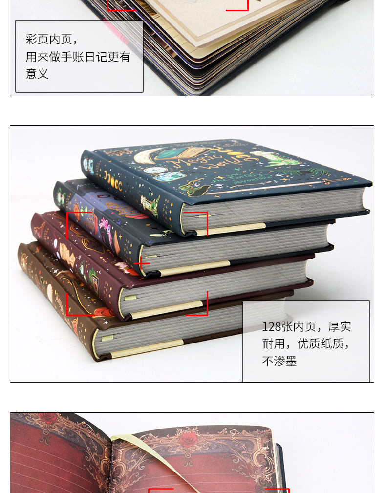 魔力の世界手帳創意抜粋レトロ携帯文芸精致日記帳カラーページイラストメモ帳