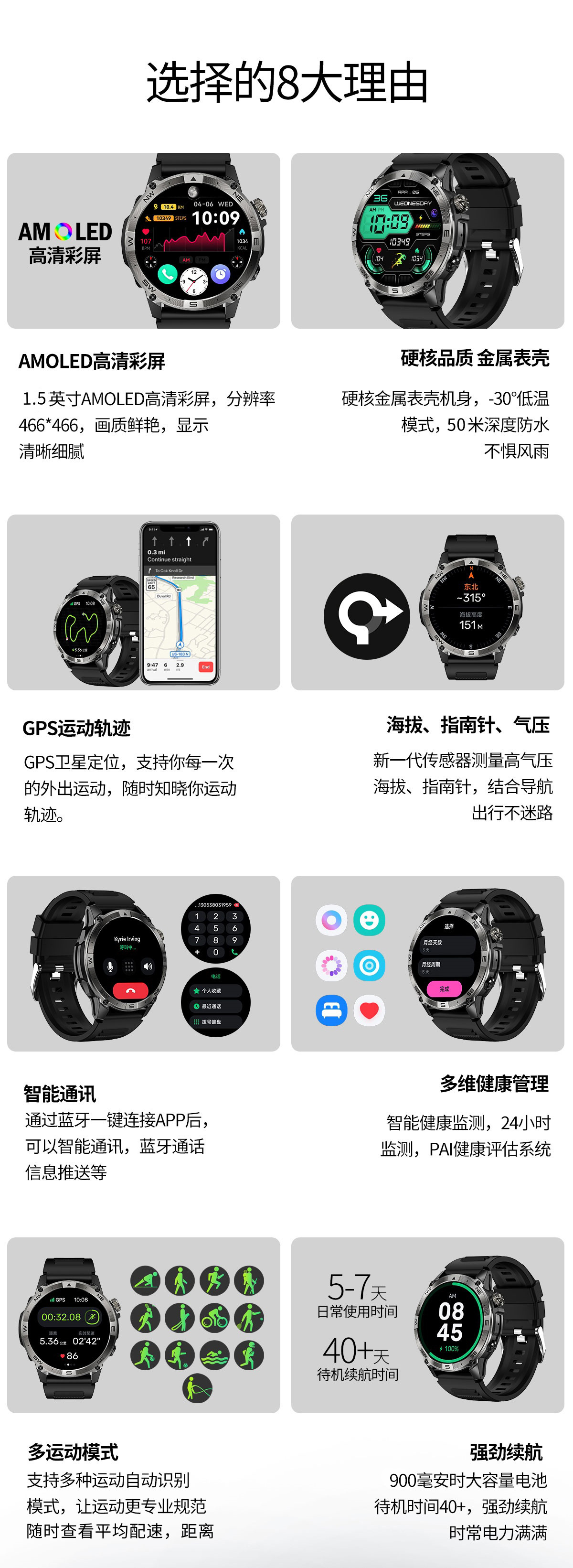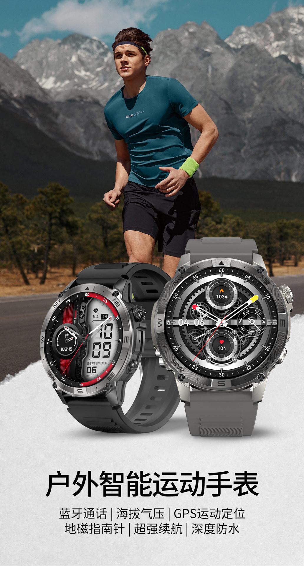 GPS北斗運動腕時計マラソンランニングはオフロードの海抜の気圧の羅針盤の屋外の水泳のスピードに乗ります。