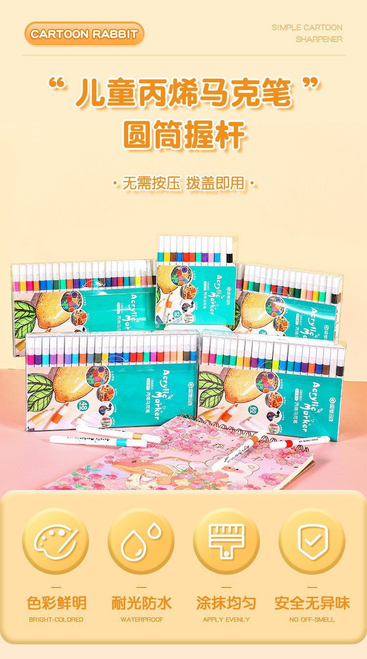 起爆pvc箱入りアクリルマークペン児童80色落書き水彩ペン折り畳み可能児童画卸売り