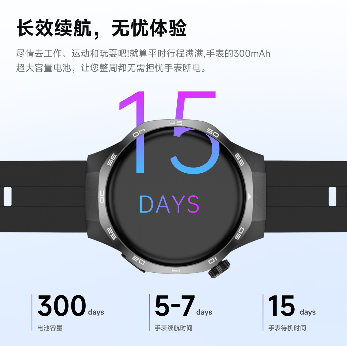| 续航时间(Life time) | 使用5-7天左右、待机15天 |