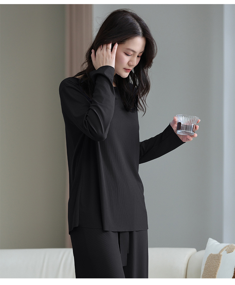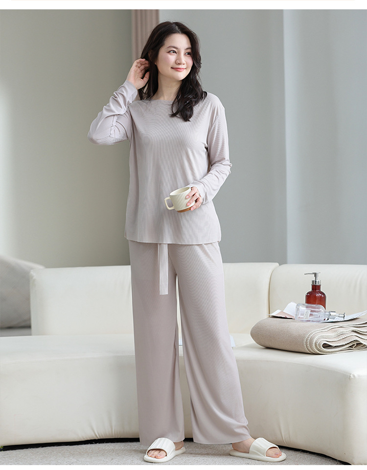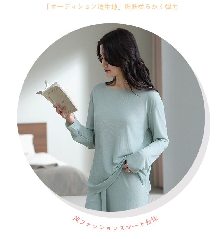 夏のパジャマの女性の氷糸の長袖の薄いモデルの新型の大きいサイズの純色のキャンディー色の家庭のスーツの涼しいエアコンの服