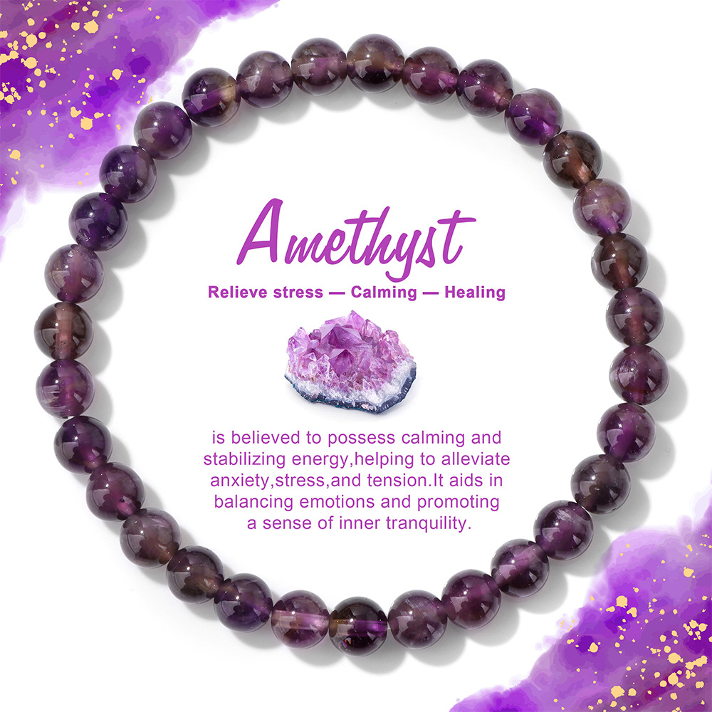 天然石ブレスレット弾力ロープビーズ6mm青松石紫水晶黄水晶帯カードセット手串卸売り