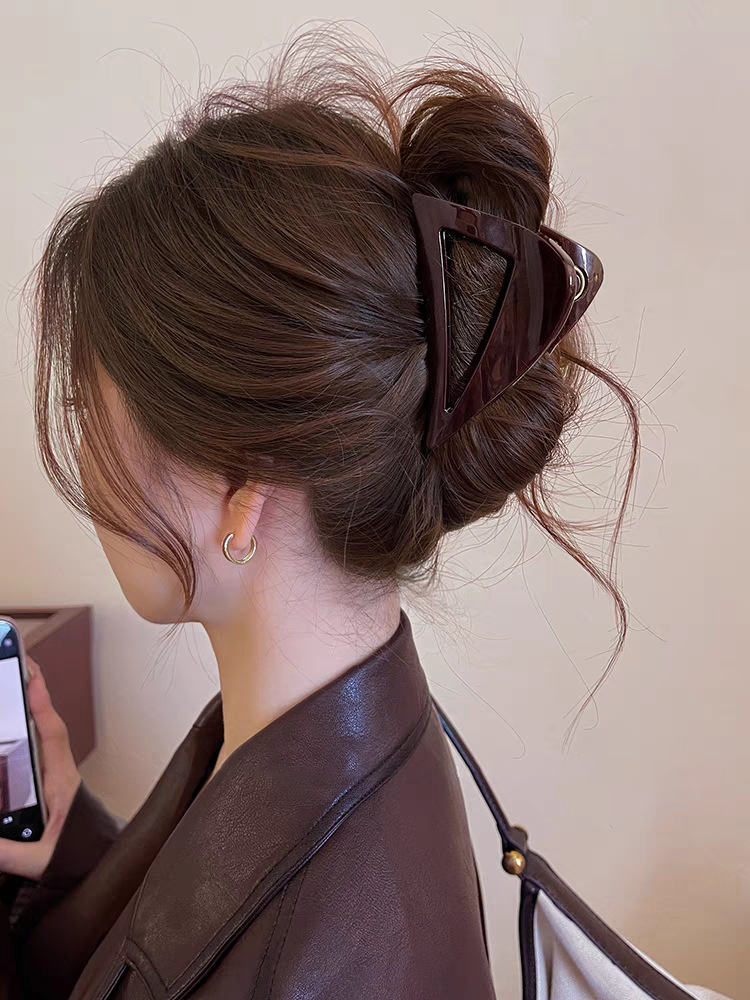 チョコレートブラウンのシンプルな髪にサメのクリップ2025の新しい高級感ヘアクリップの女性の後頭部クリップの髪飾り