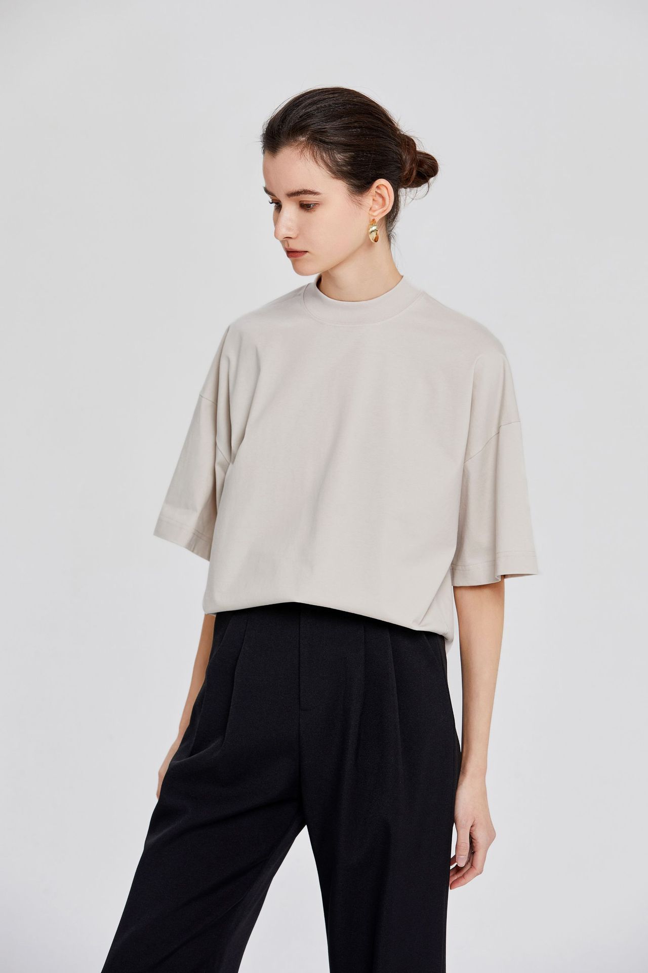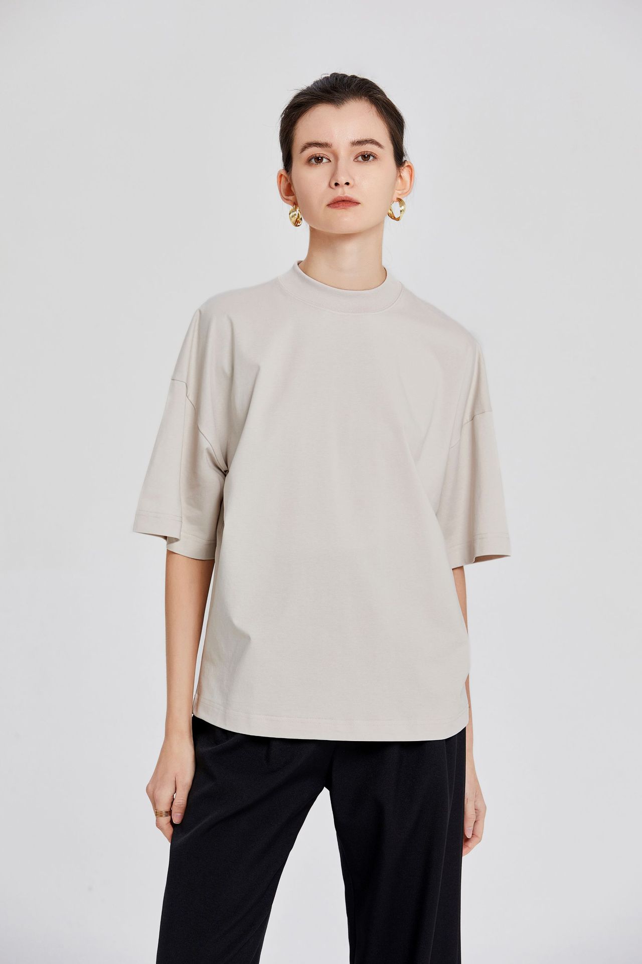 ROW極簡風郭形コウモリ袖tシャツ女性ゆったり版後中縫いデザイン感シンプルな半袖tシャツ
