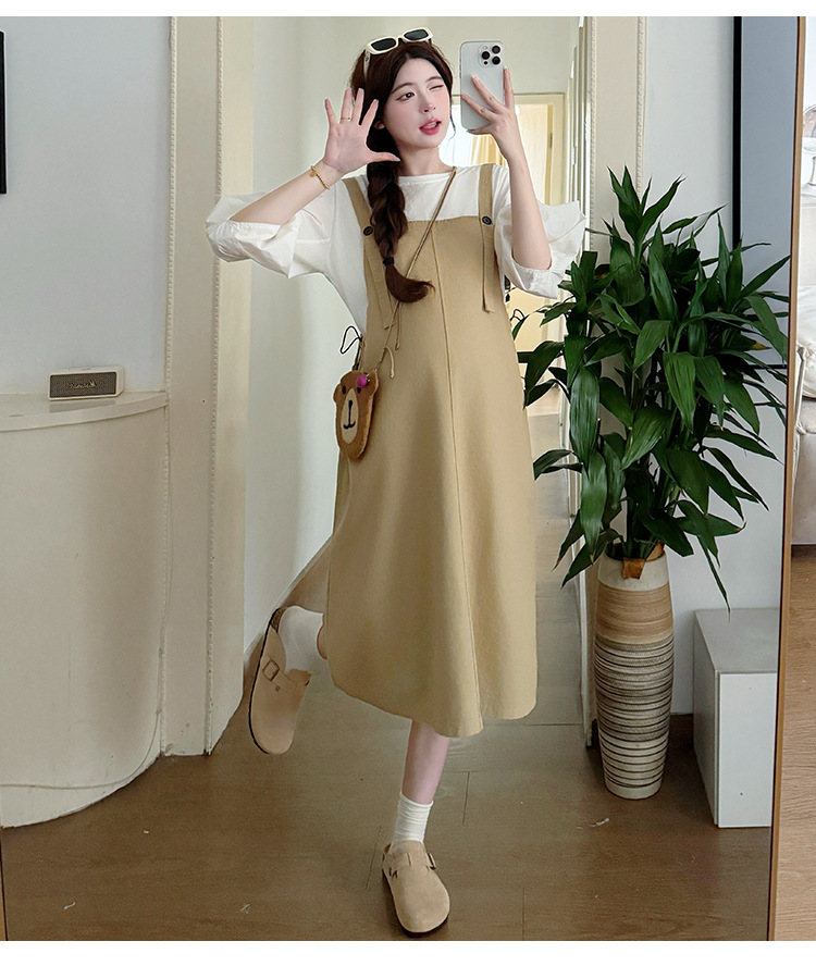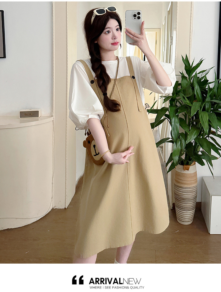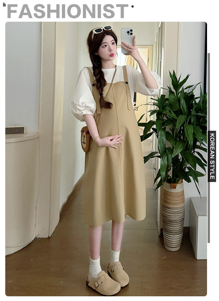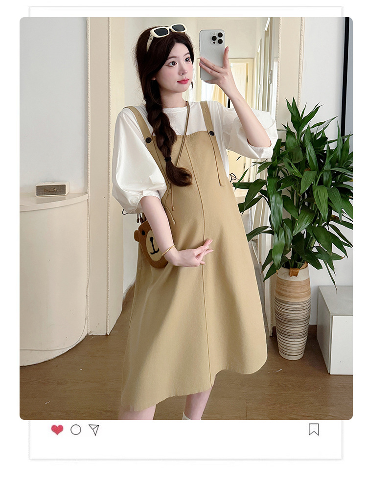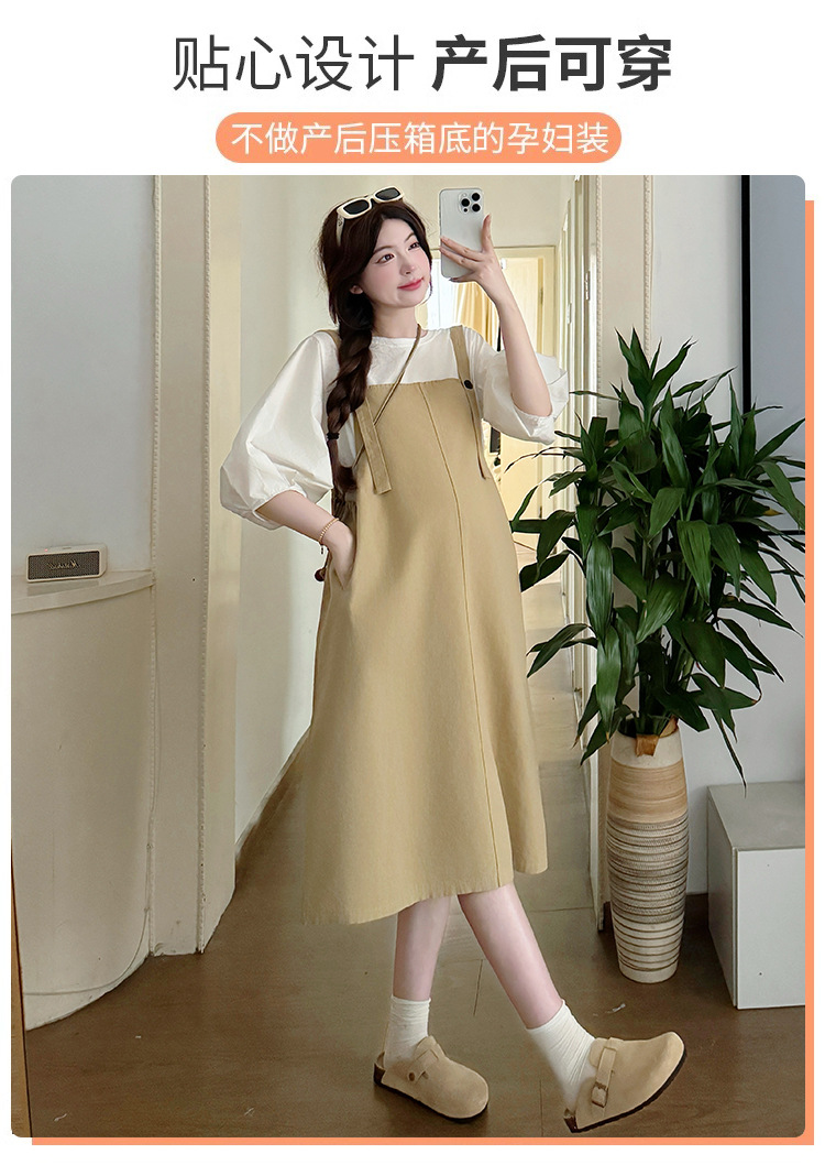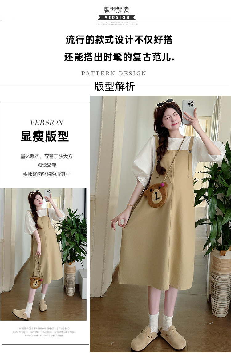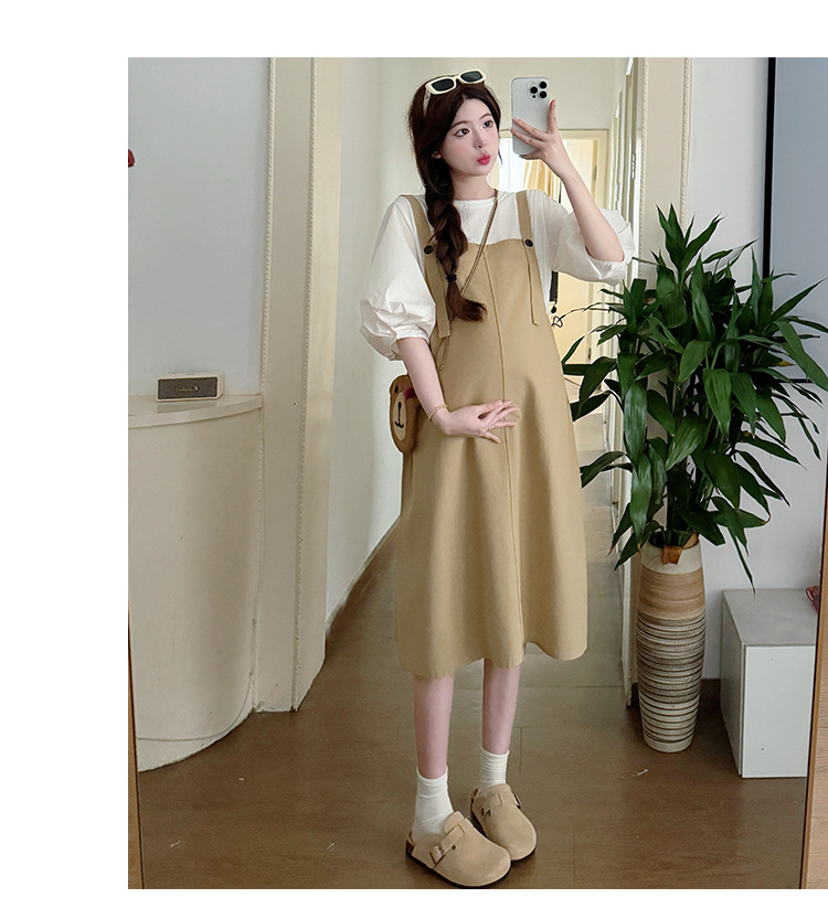 マタニティ服夏 2025 新しいファッショナブルなフレンチスタイルルーズプラスサイズトップサスペンダースカートツーピースマタニティドレス
