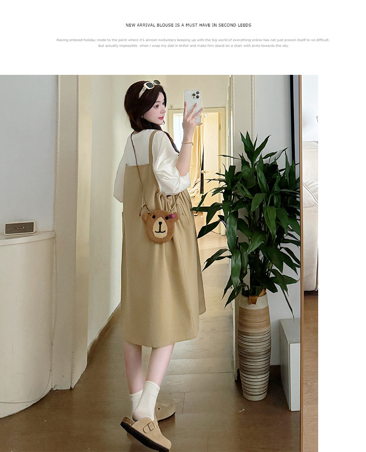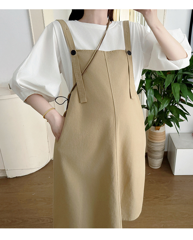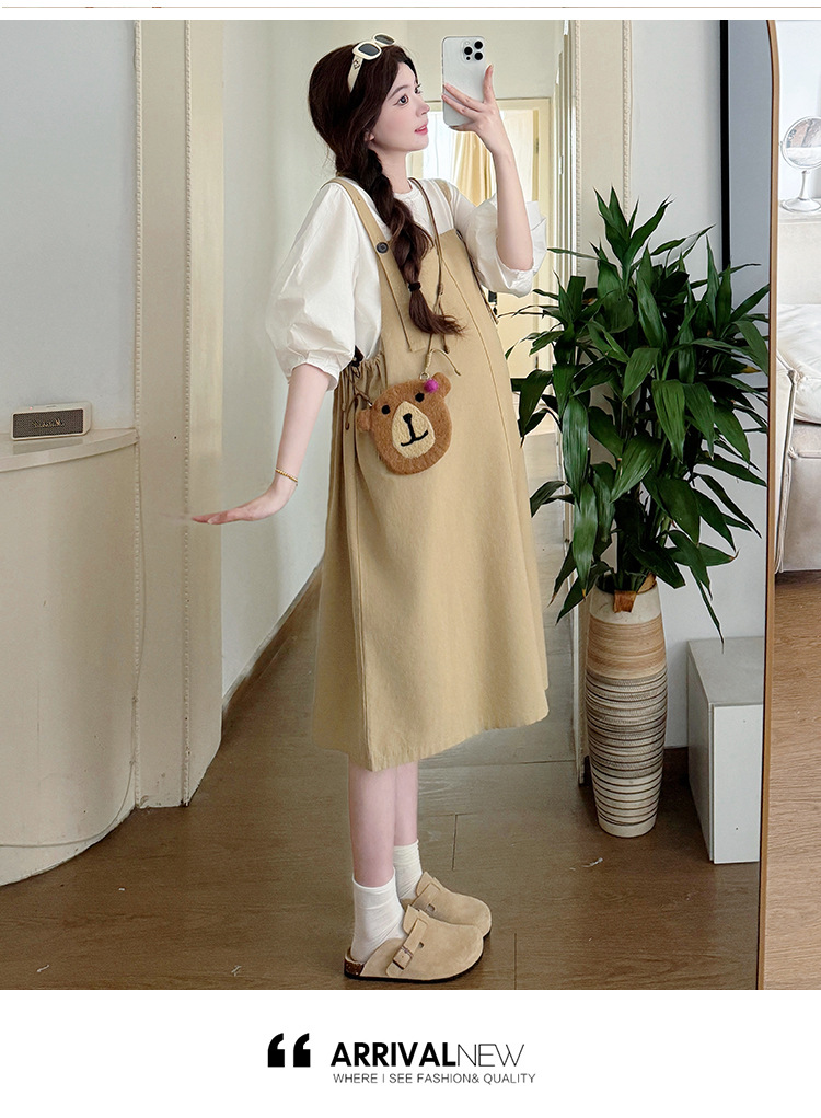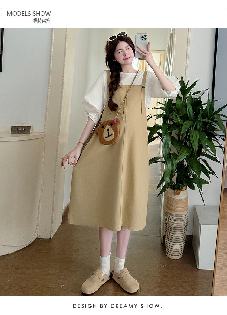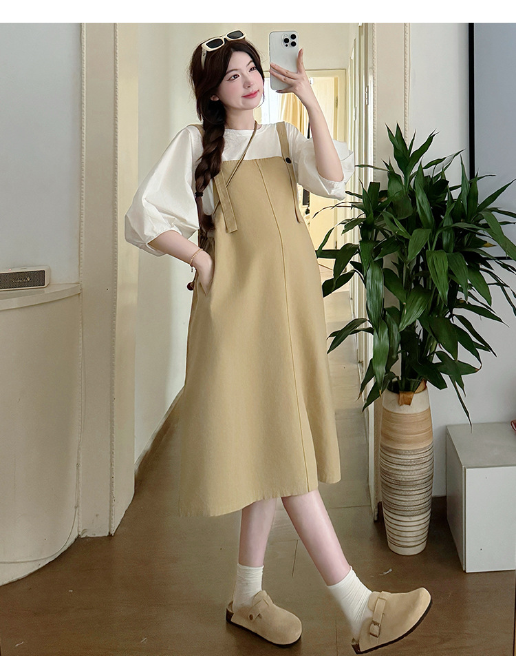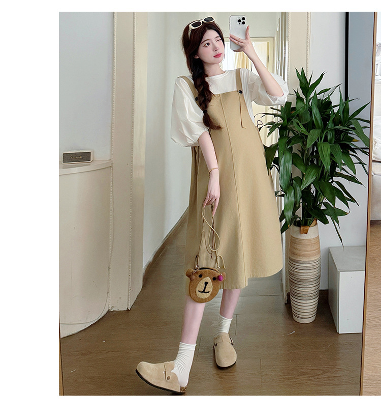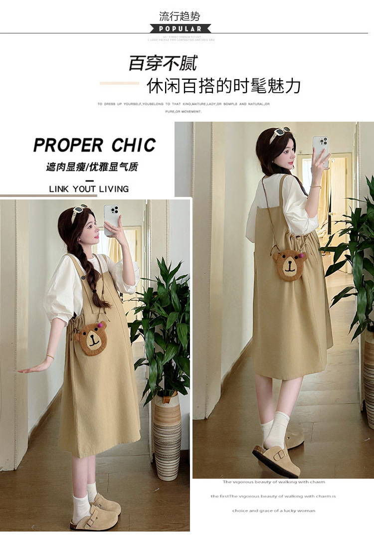 マタニティ服夏 2025 新しいファッショナブルなフレンチスタイルルーズプラスサイズトップサスペンダースカートツーピースマタニティドレス