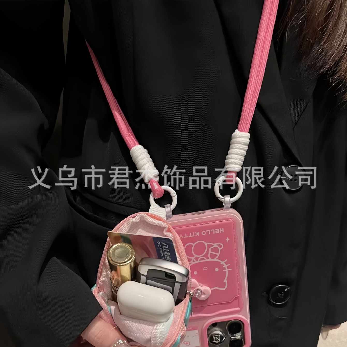 編みカバンのストラップの螺旋の結び紐のiuは鍵のボタンのネットの赤い色の結びの縄の装飾の部品を結びます。