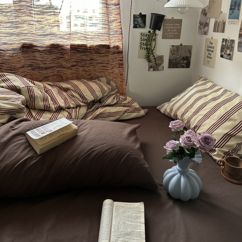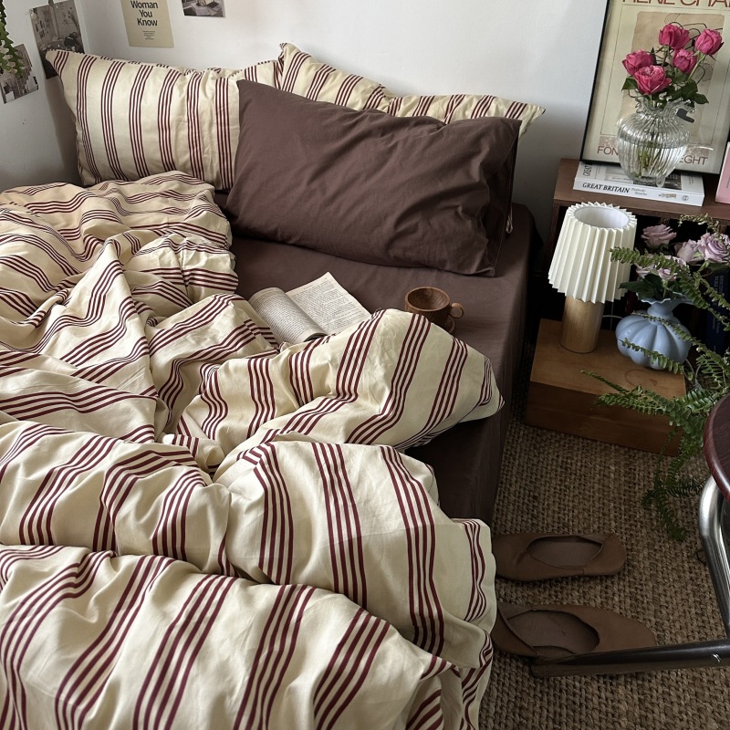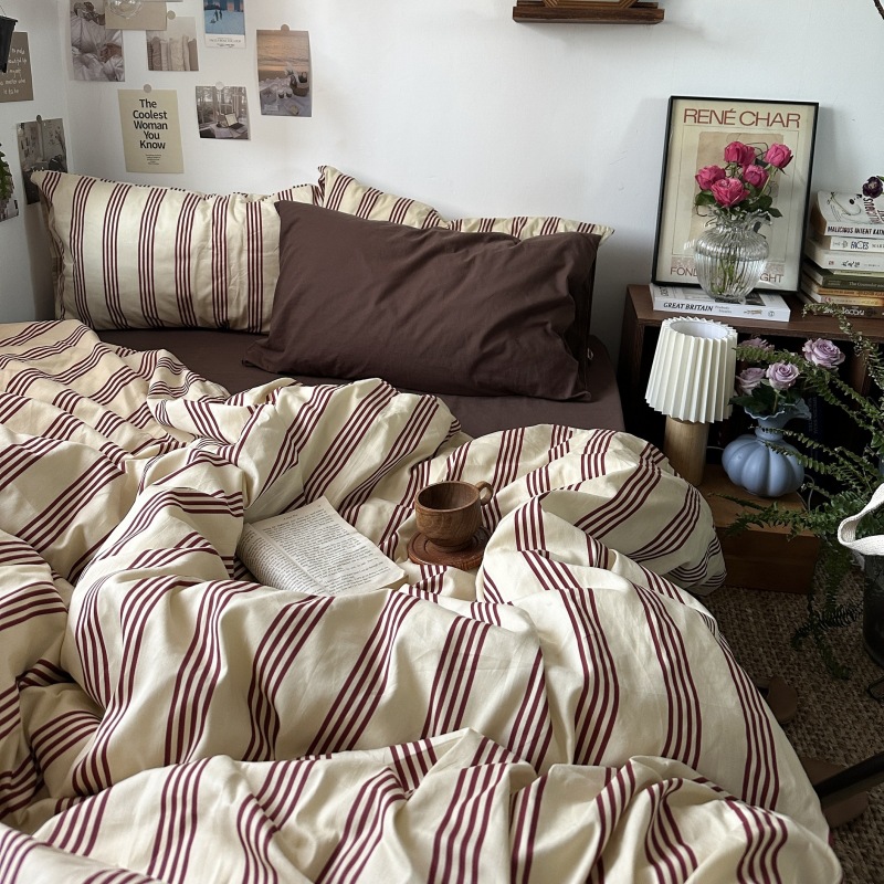 アメリカのレトロでシンプルなストライプの純綿ベッド4点セット100綿シーツベッドカバー寮3点セット4