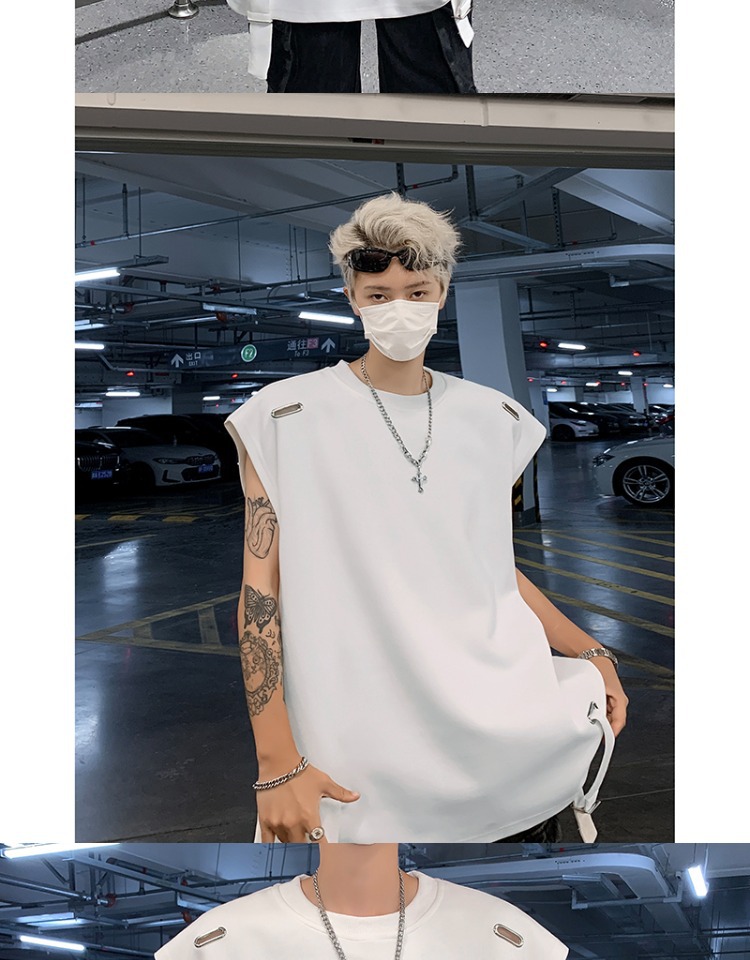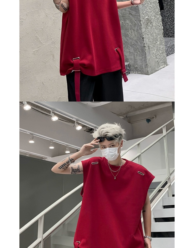 ワインレッドの重ポンド形のベスト男夏小衆のデザイン感が漂っています。
