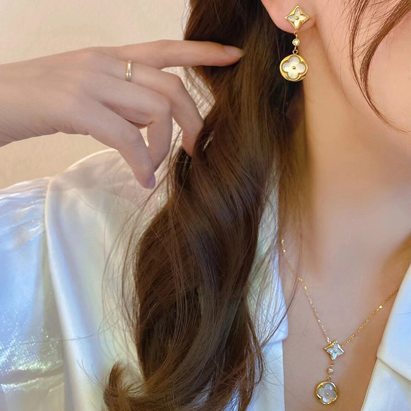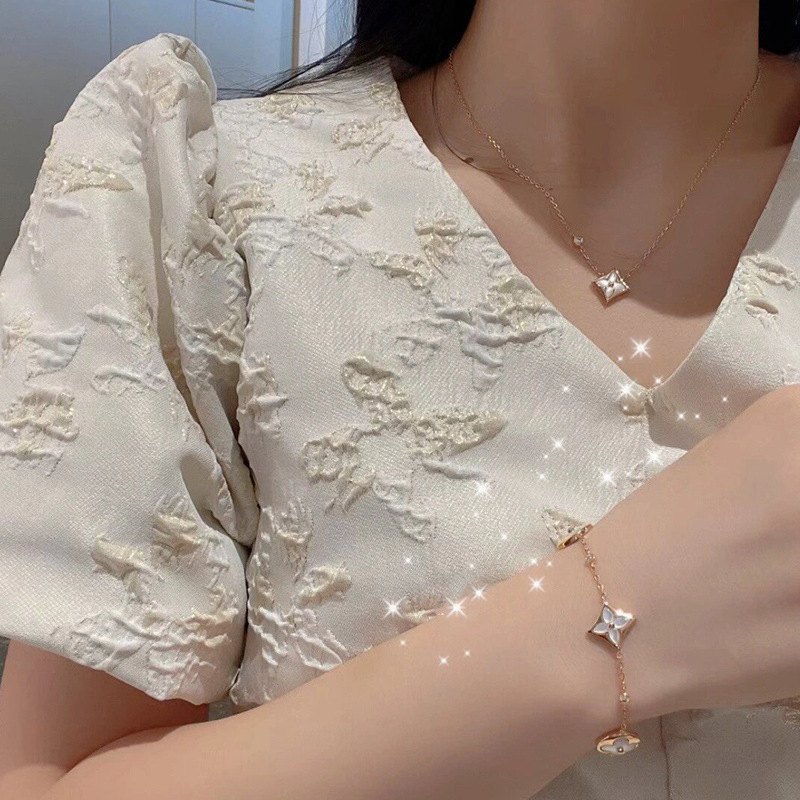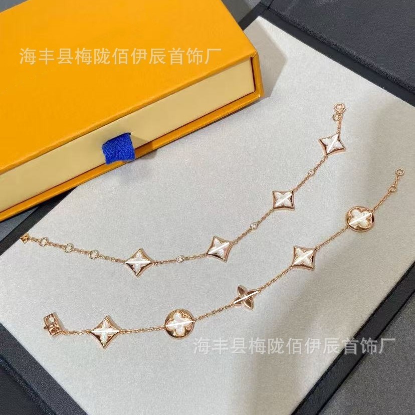 ロバの家四葉草四花五花ブレスレット女性用18Kローズゴールドメッキ軽奢菱形丸型白貝母ネックレスins