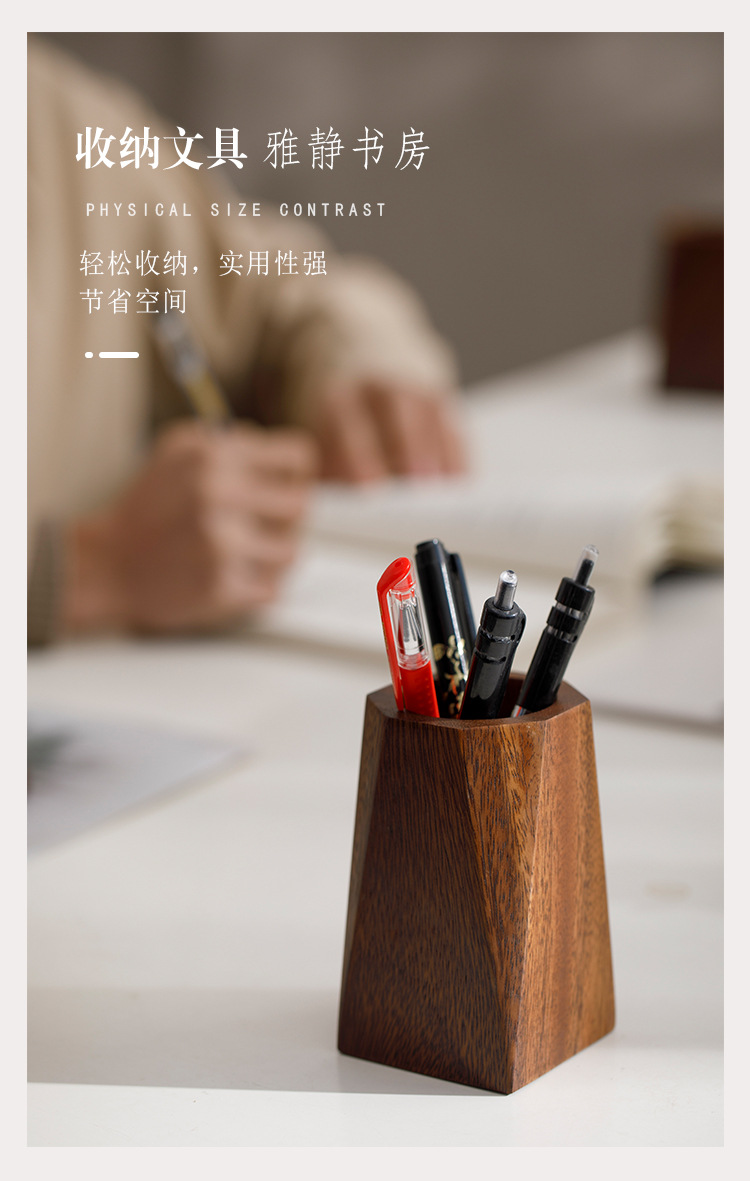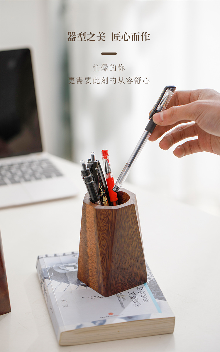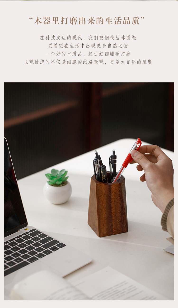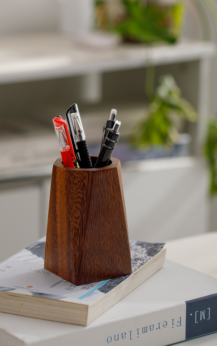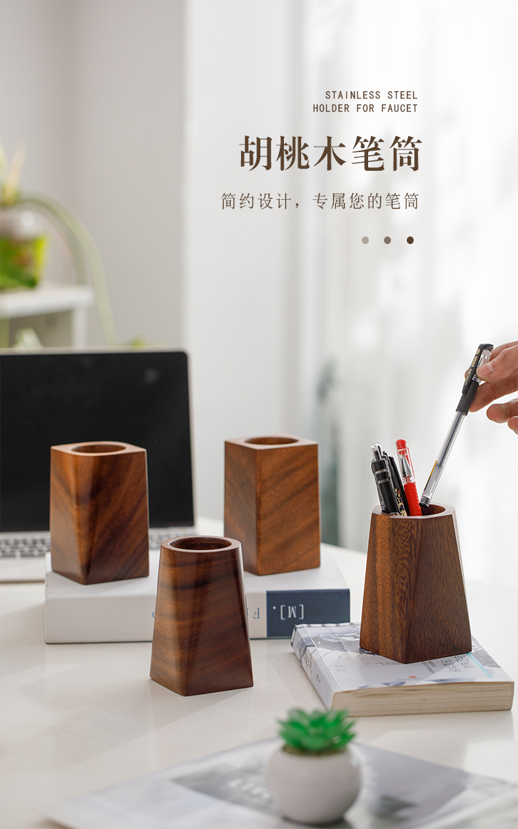 胡桃木筆立て創意実木収納箱事務室のデスクトップに筆立ての胡桃木感があります。