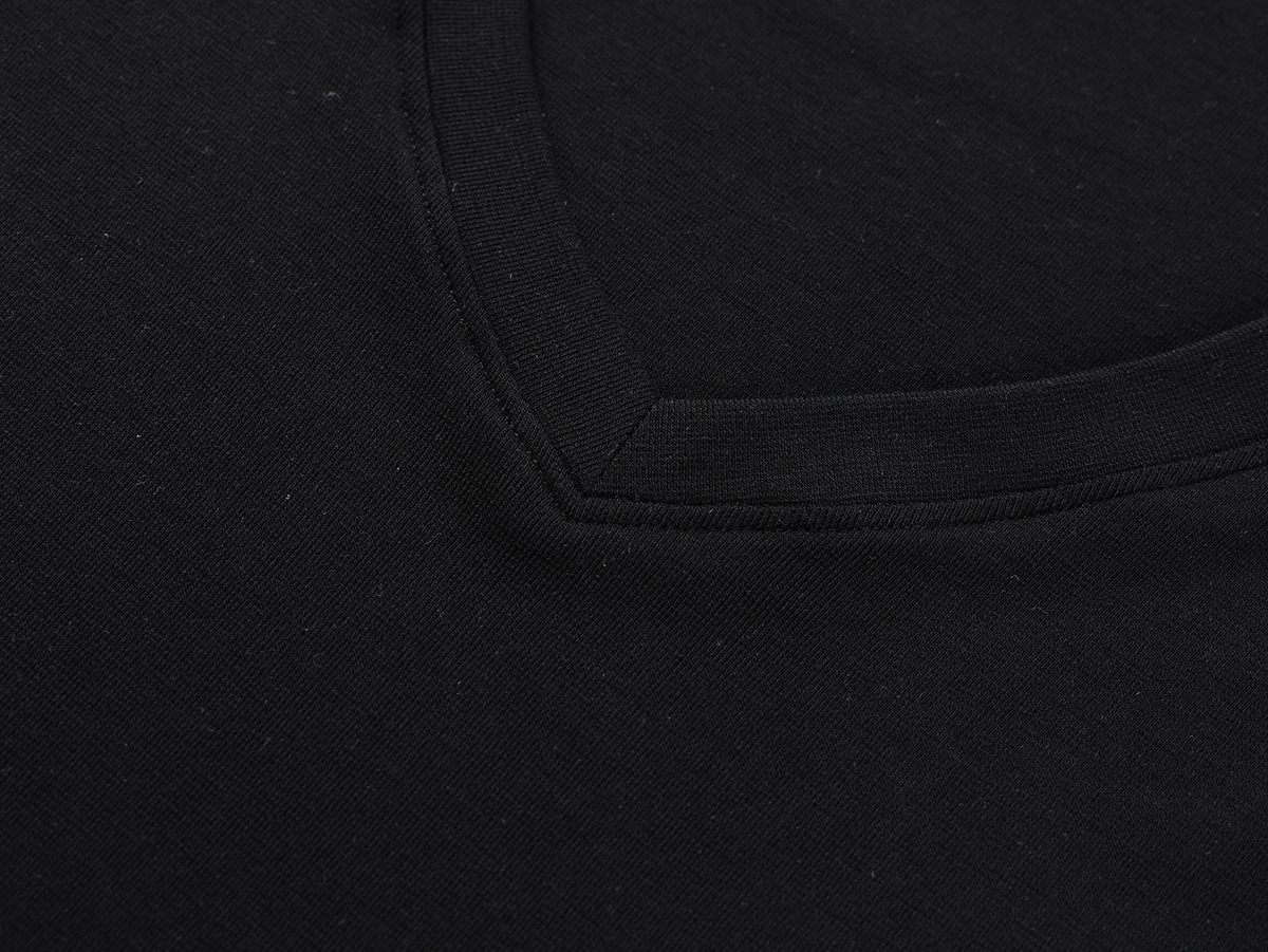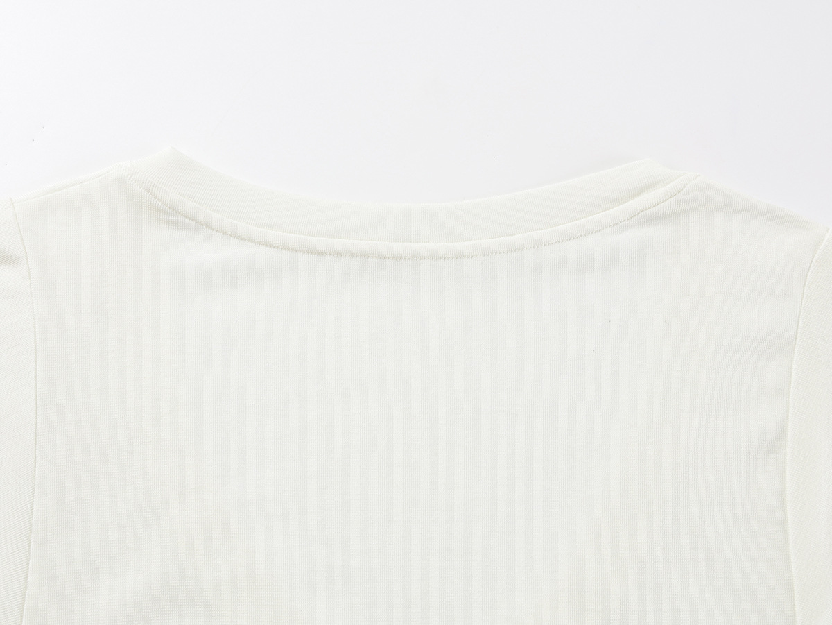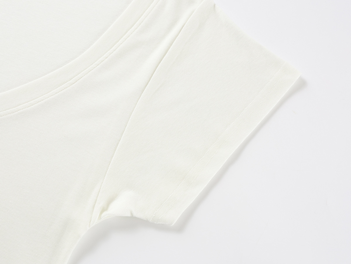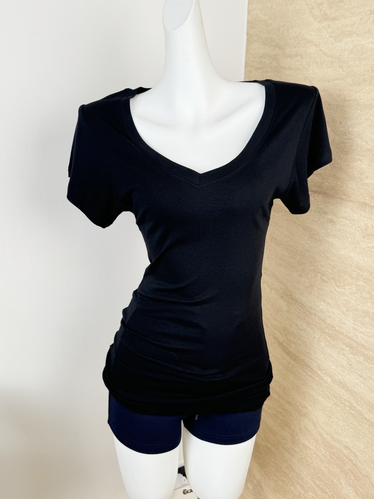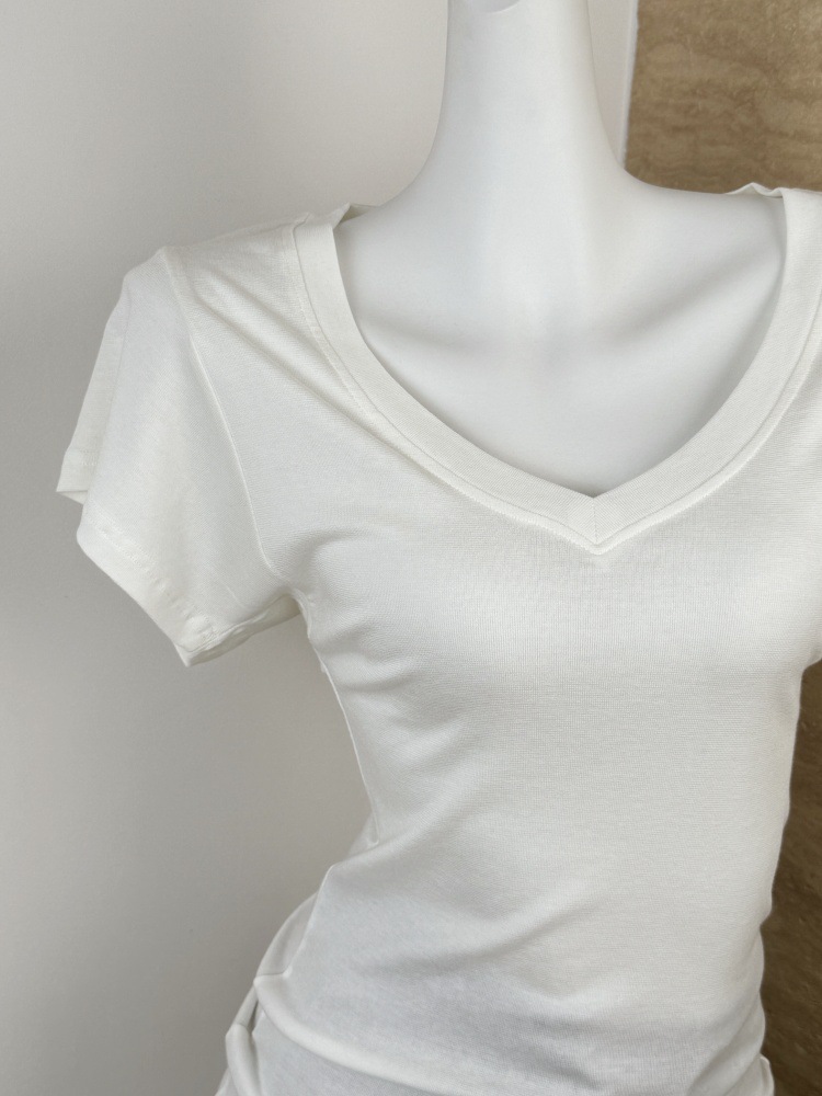 スポットテンセルウール品質ハイエンドシンプルスタッキングデザイン大きめVネック半袖Tシャツスリム鎖骨露出トップス