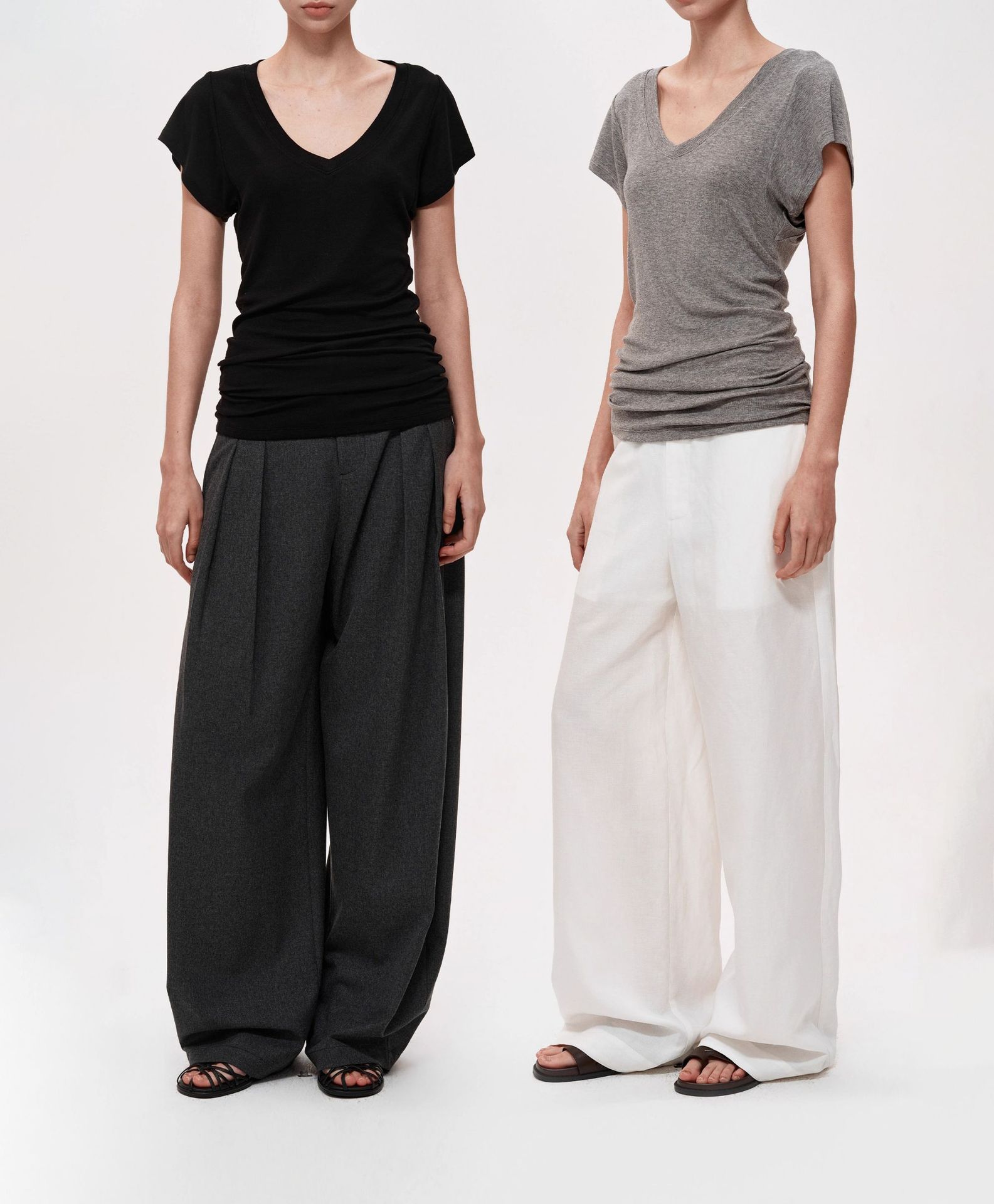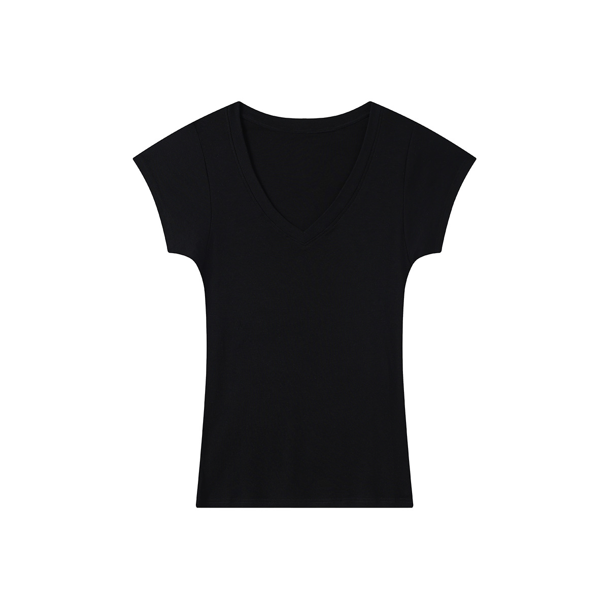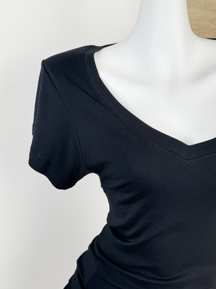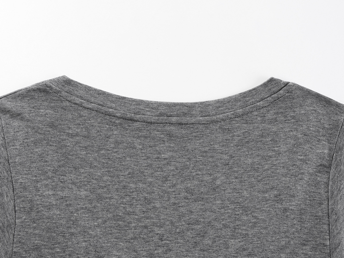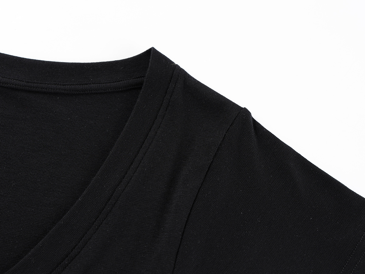 スポットテンセルウール品質ハイエンドシンプルスタッキングデザイン大きめVネック半袖Tシャツスリム鎖骨露出トップス
