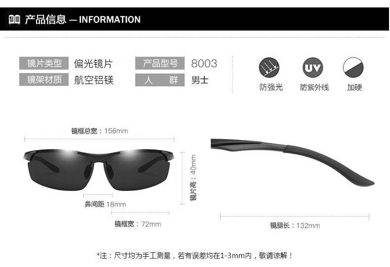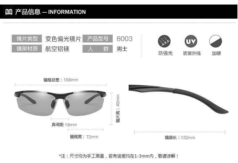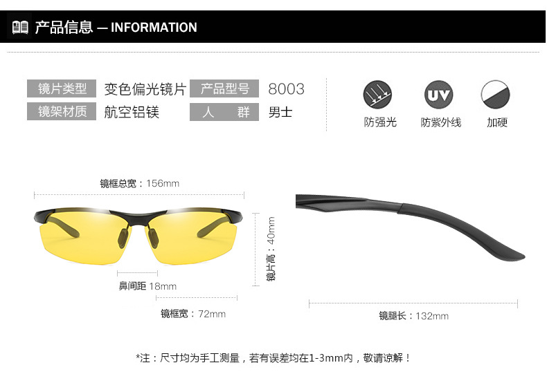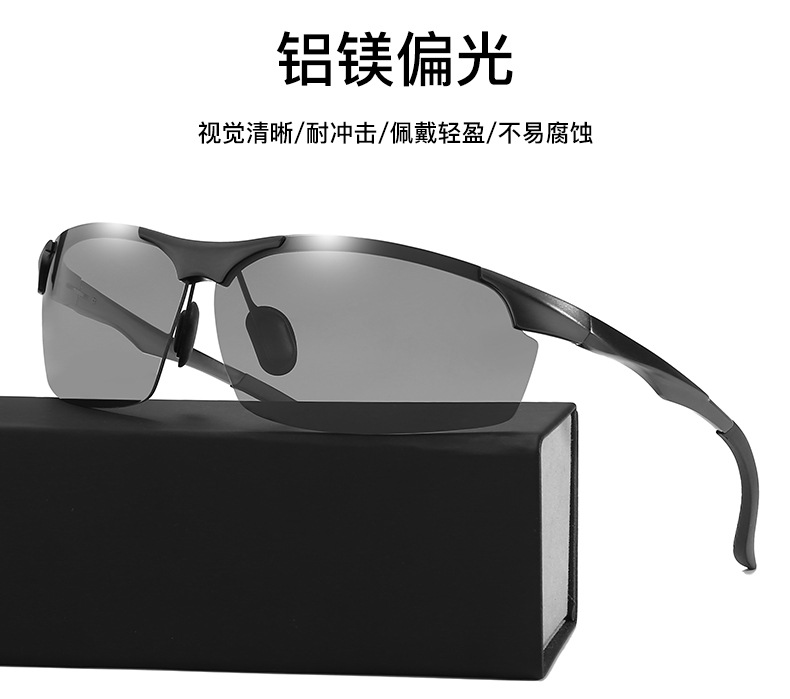クロスボーダー新しいアルミマグネシウム変色サングラス昼夜偏光ナイトビジョンスポーツサイクリングメガネ卸売 8003