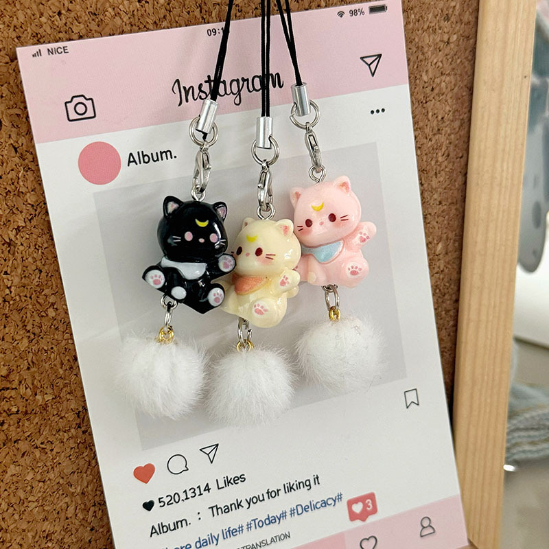 新商品の立体アニメの子猫の携帯チェーンが可愛い樹脂のキーホルダーです。