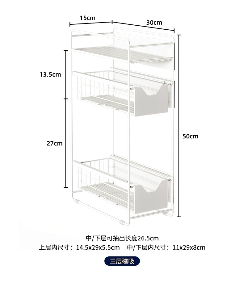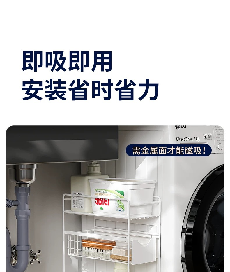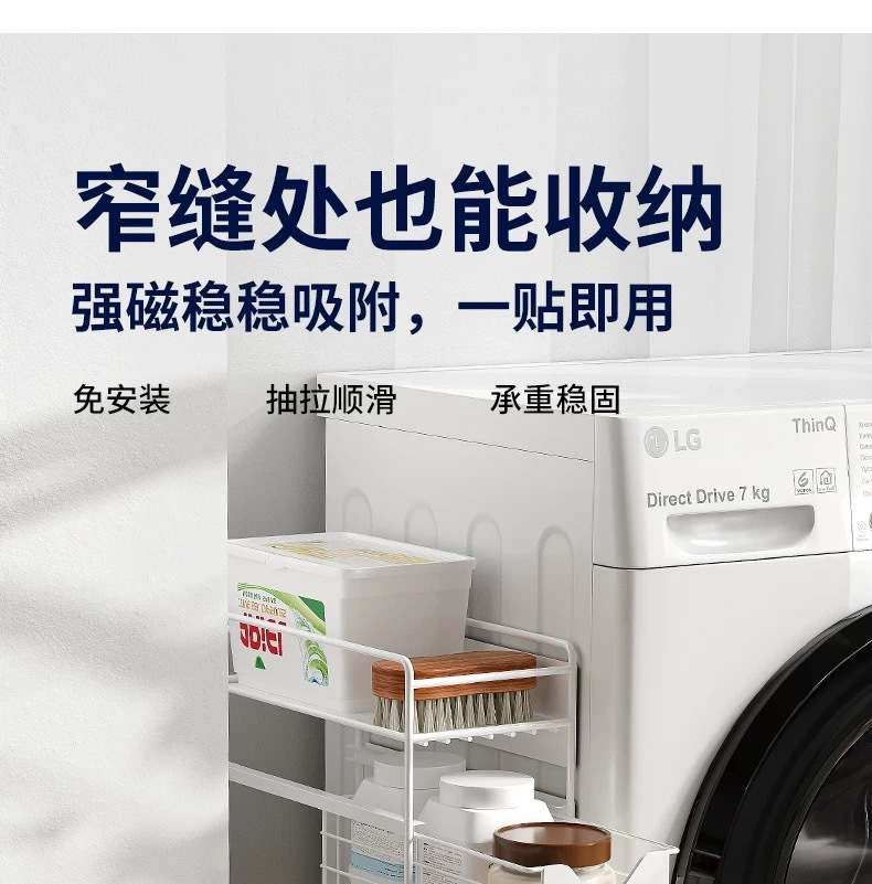 設置不要の洗濯機用収納ラック、磁気式収納整理ラック、隙間引き出し式ラック、多層収納ラック