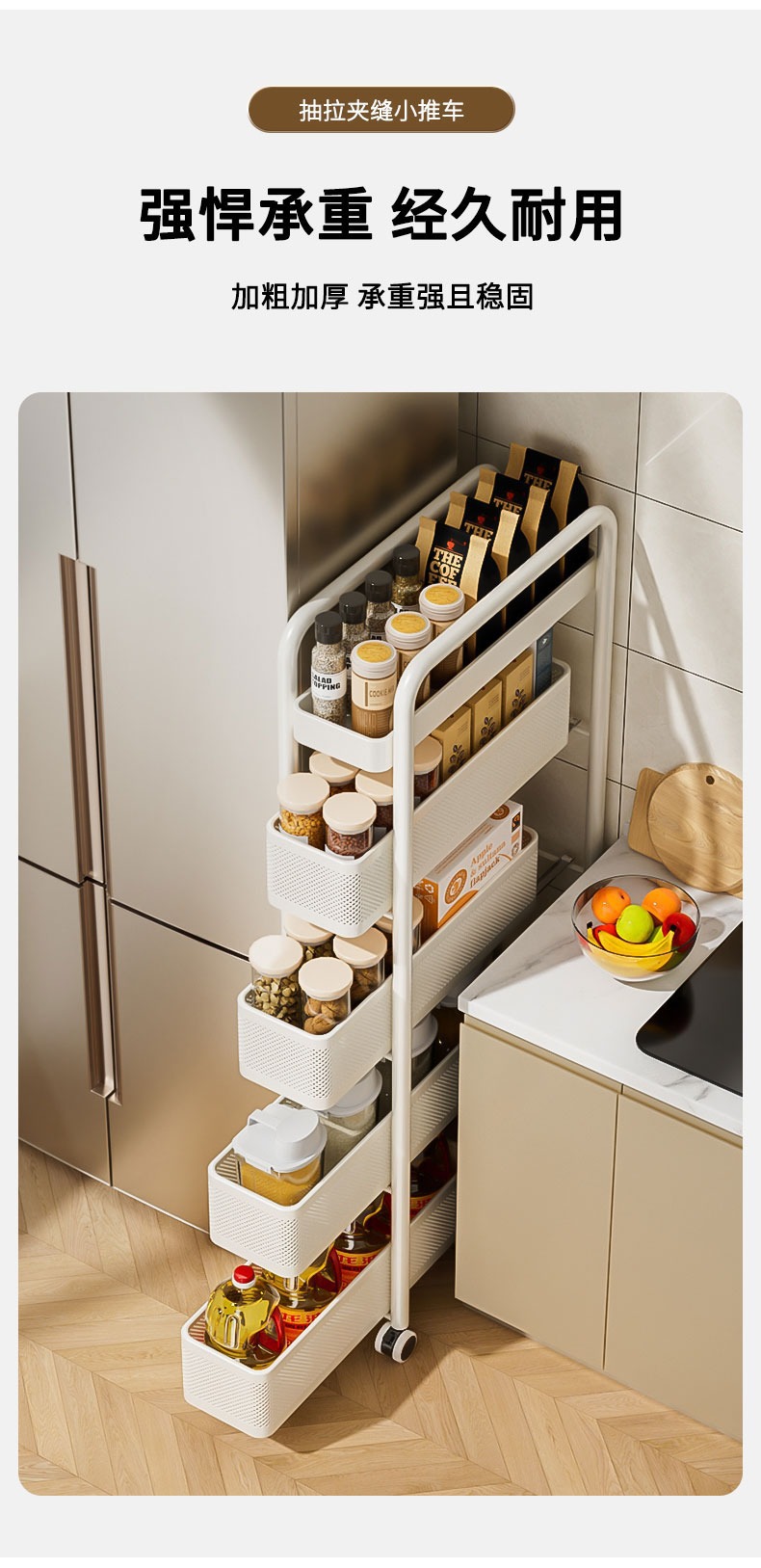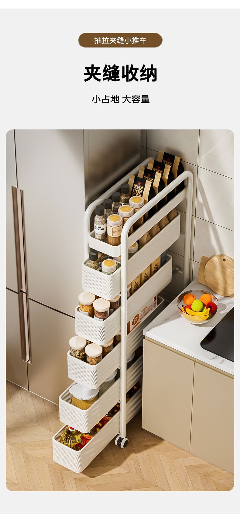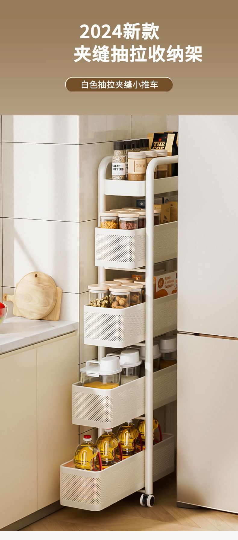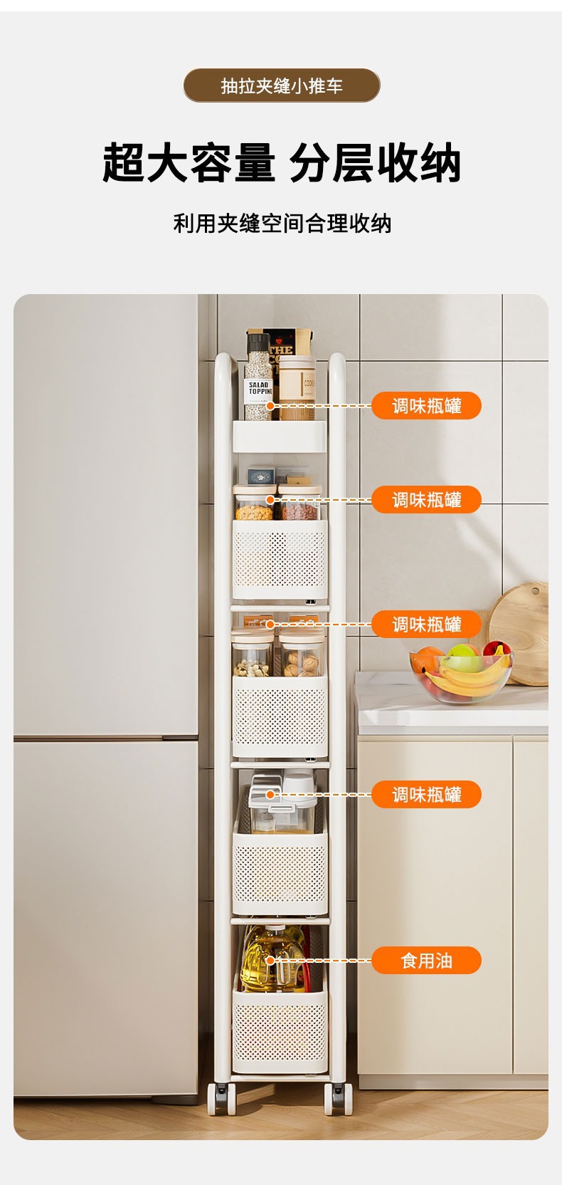 キッチンの隙間を厚くするカート棚冷蔵庫の側面引き出し棚トイレの狭い隙間収納棚