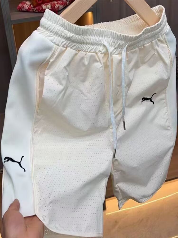 メンズショートパンツ夏新作アイスパンツトレンドカジュアル五分丈パンツ通気メッシュスポーツパンツビーチパンツ