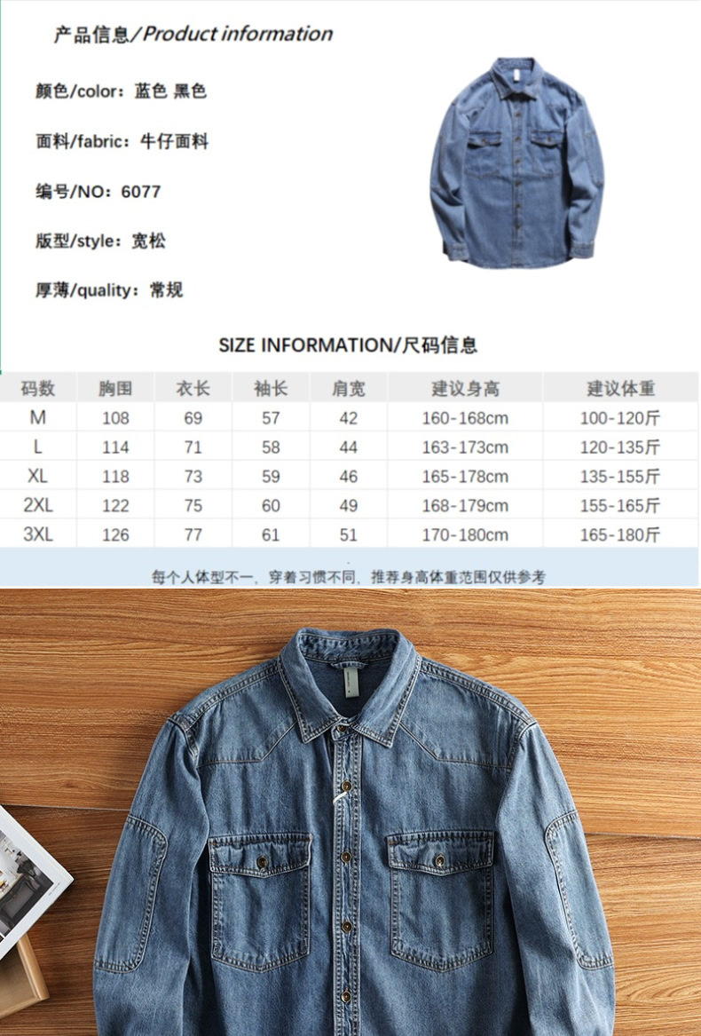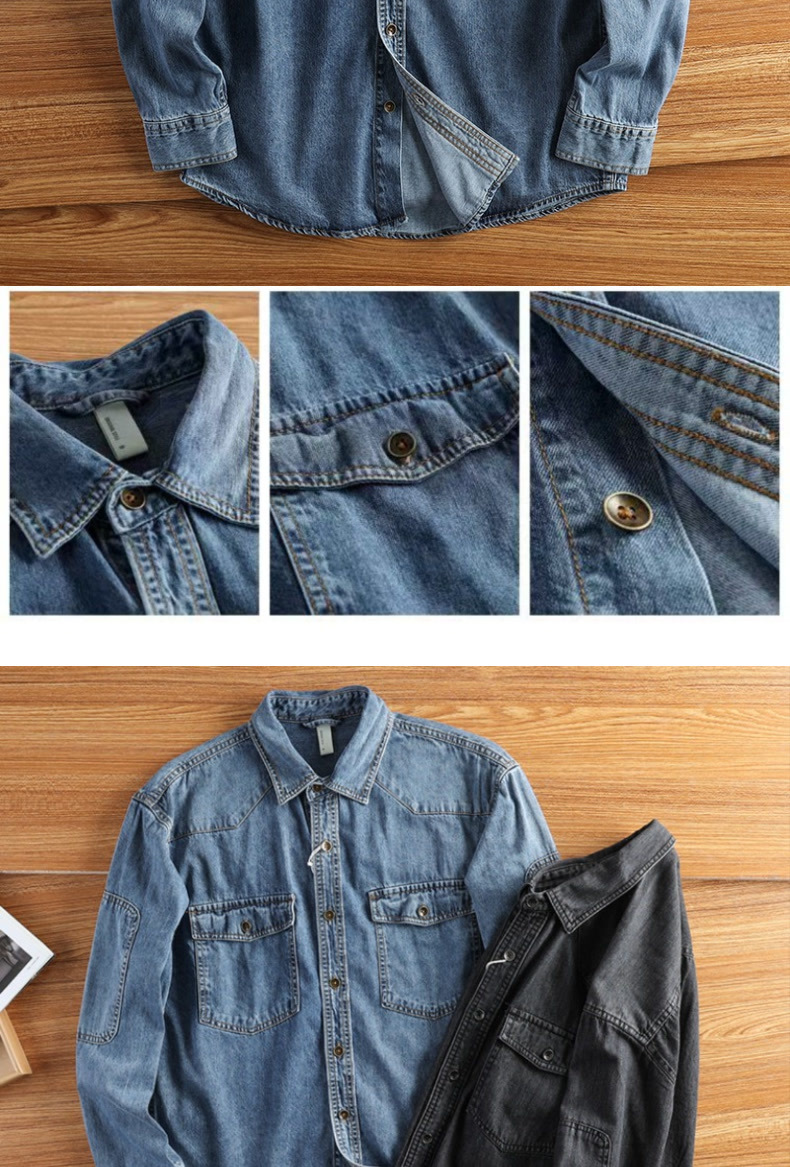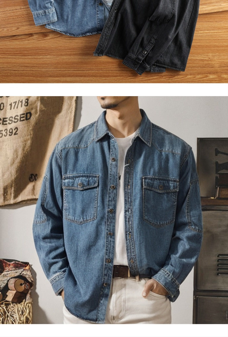 アメリカのカジュアルなデニムのシャツの男性の上着はゆったりしています。