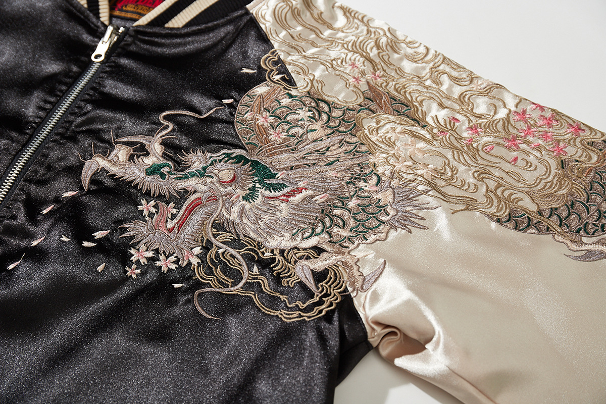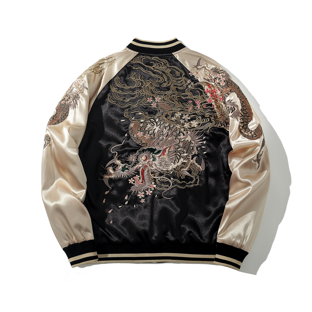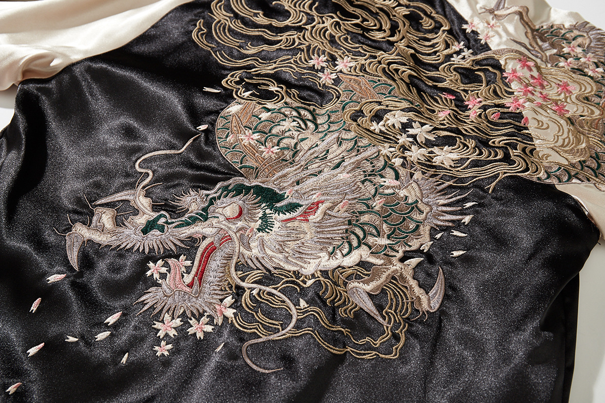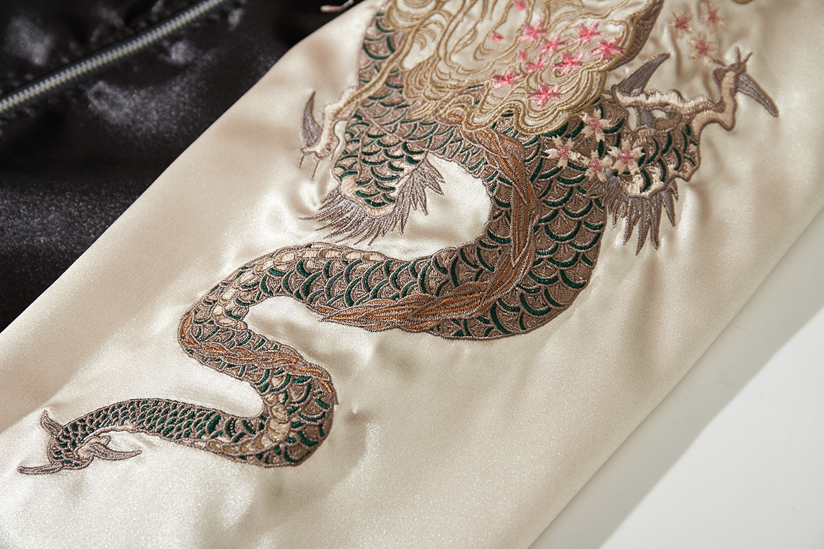 華夏君品中国風国潮重工刺繍龍ジャケットメンズファッションカジュアル龍柄野球服A013
