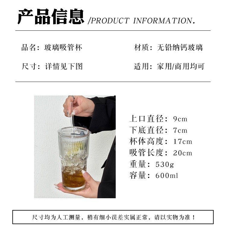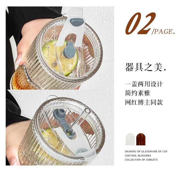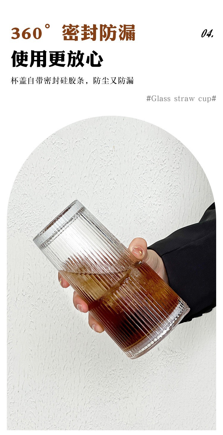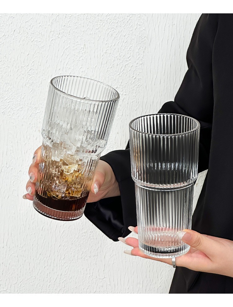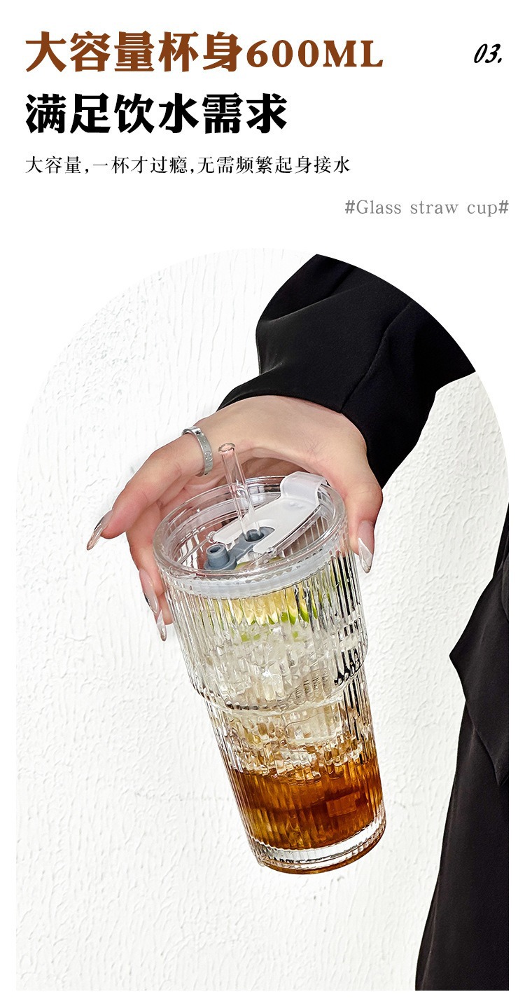 冷たいドリンクカップ、蓋とストロー付きの見栄えの良いジュースコーヒーカップ、縦縞インスタイルの大容量ガラスウォーターカップ