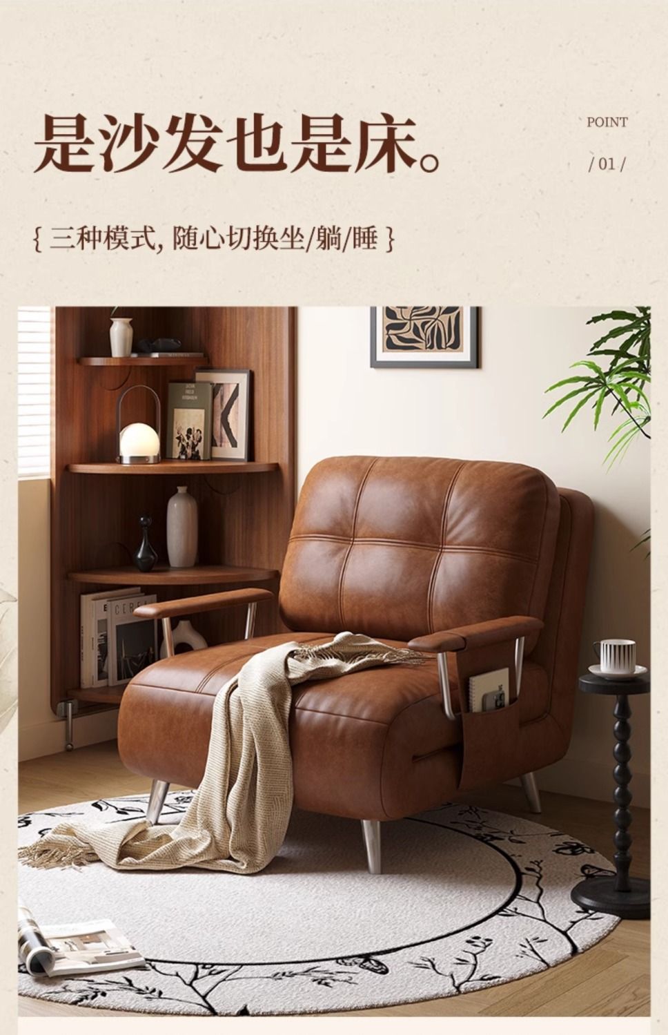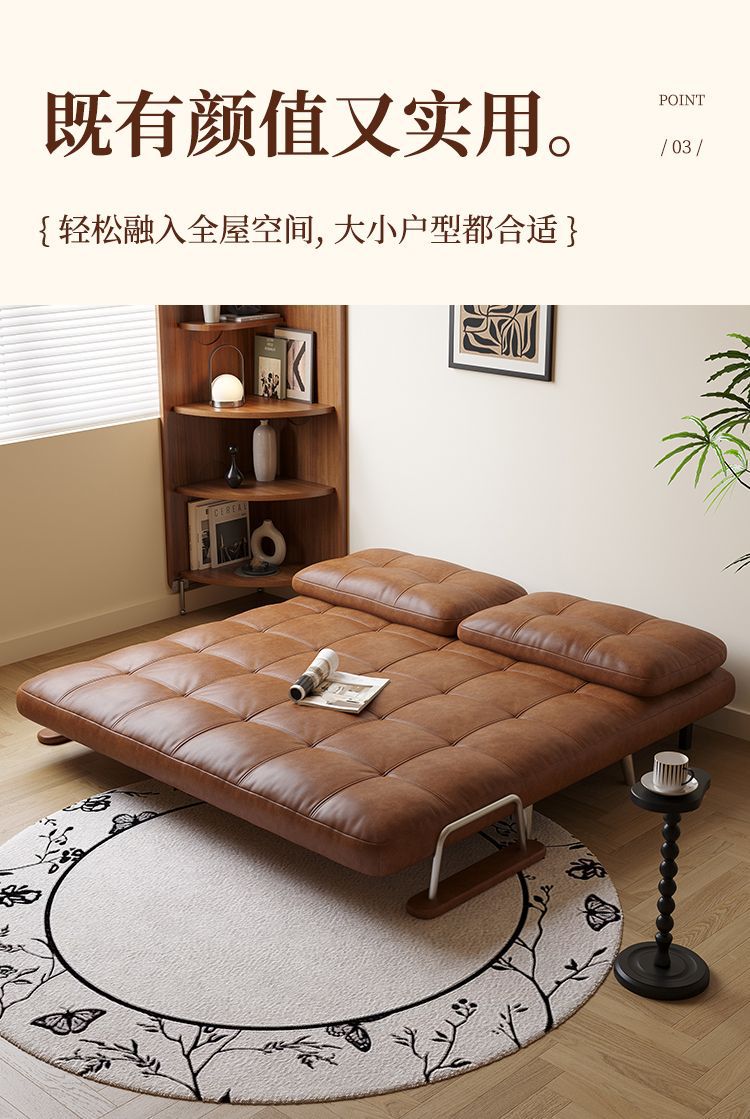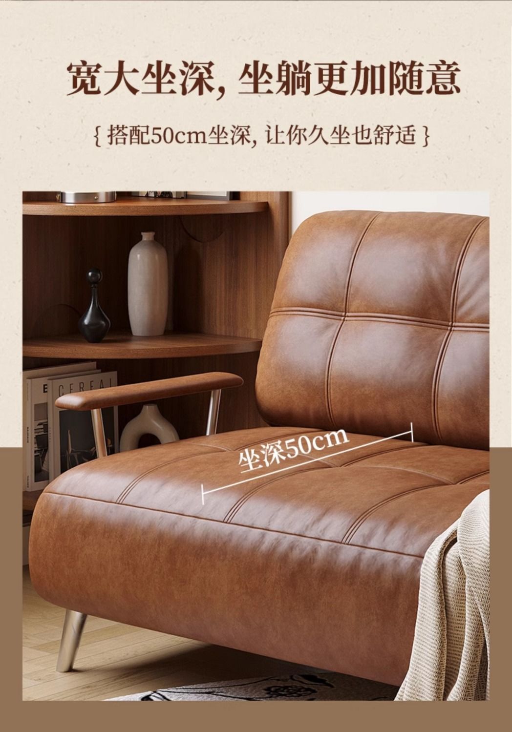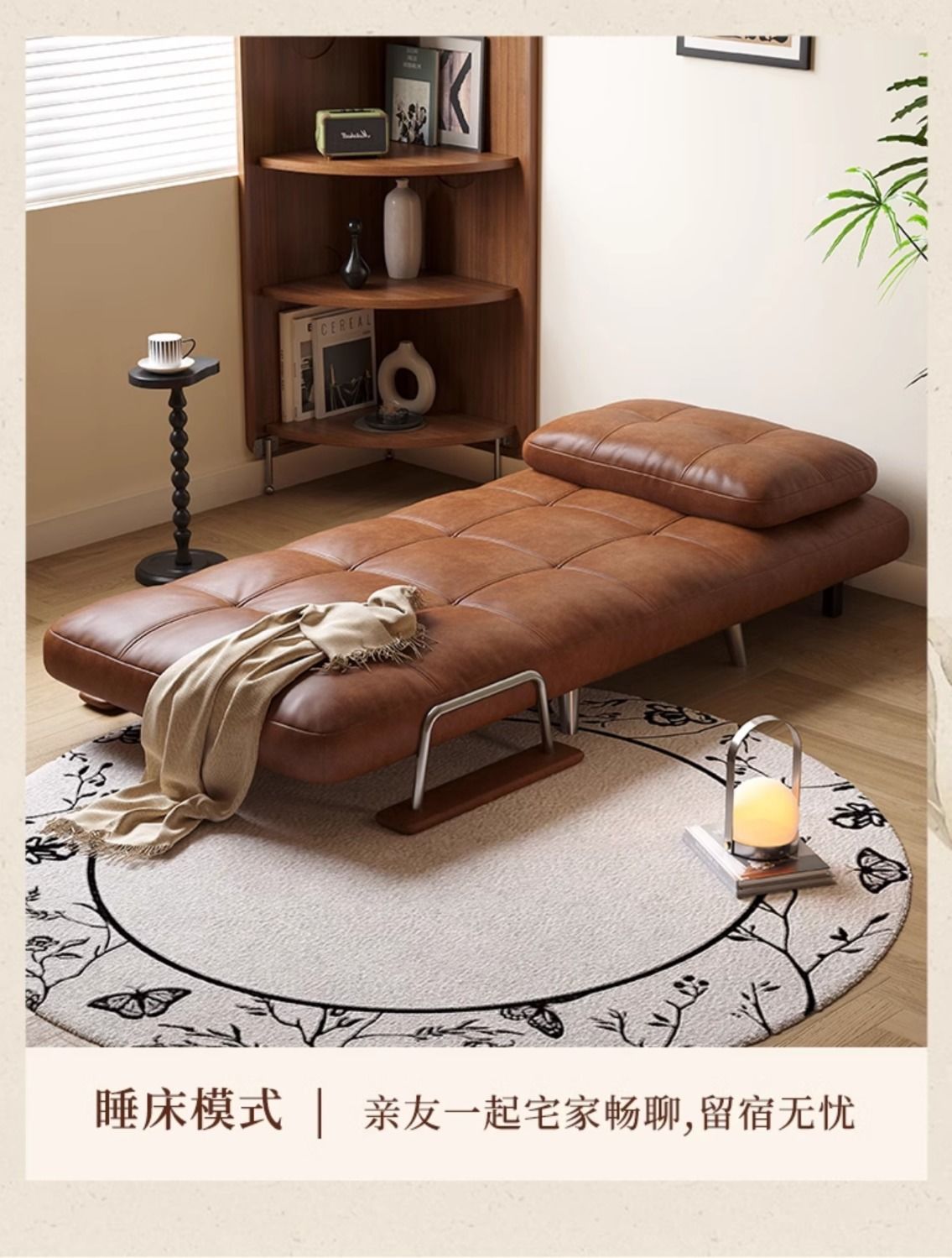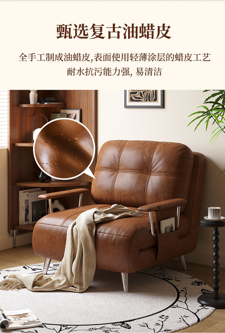 ホット販売ソファベッド一人折りたたみ両用中古風小戸型伸縮油蝋皮ソファ書斎二人用オイルワックス