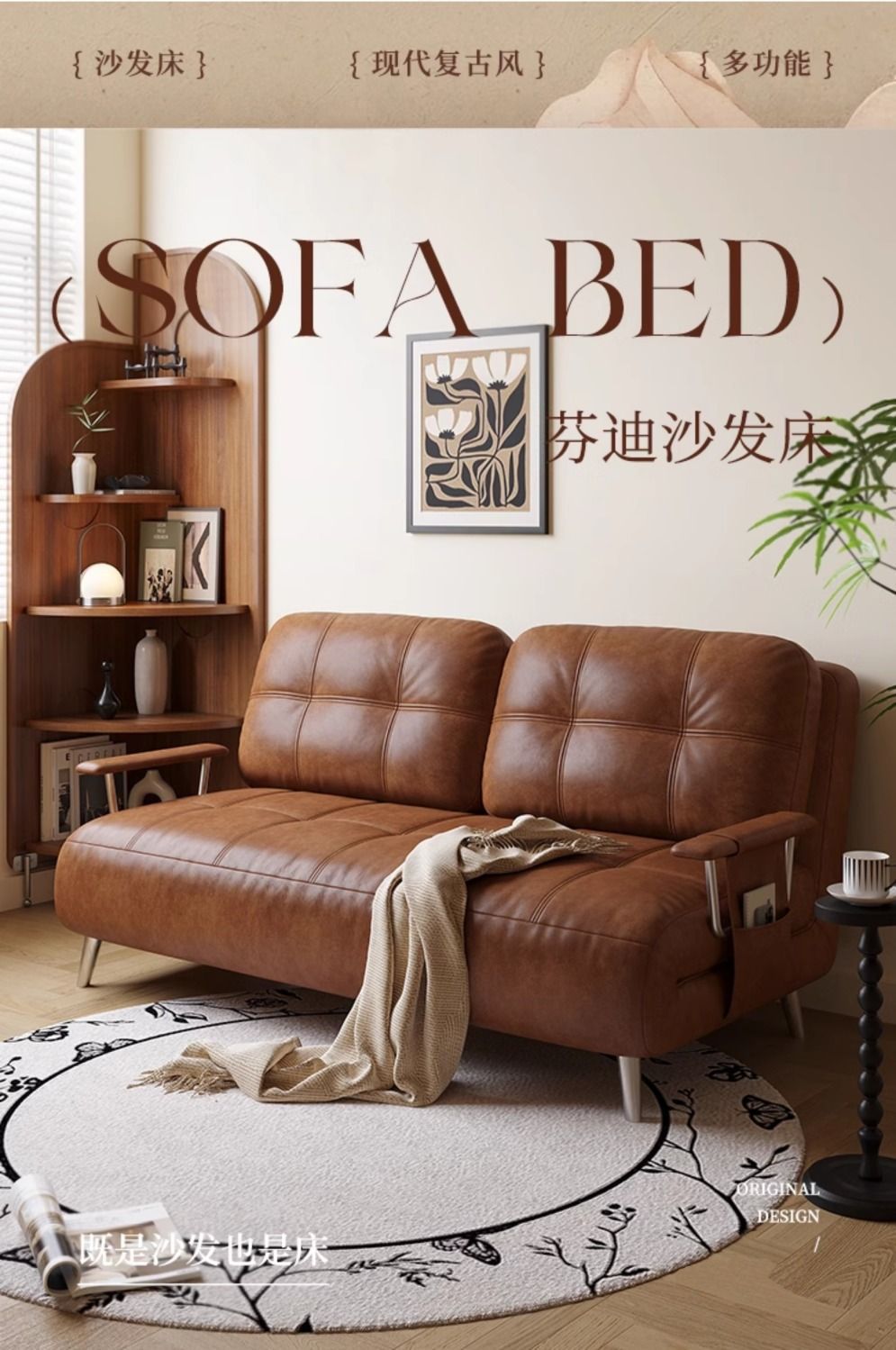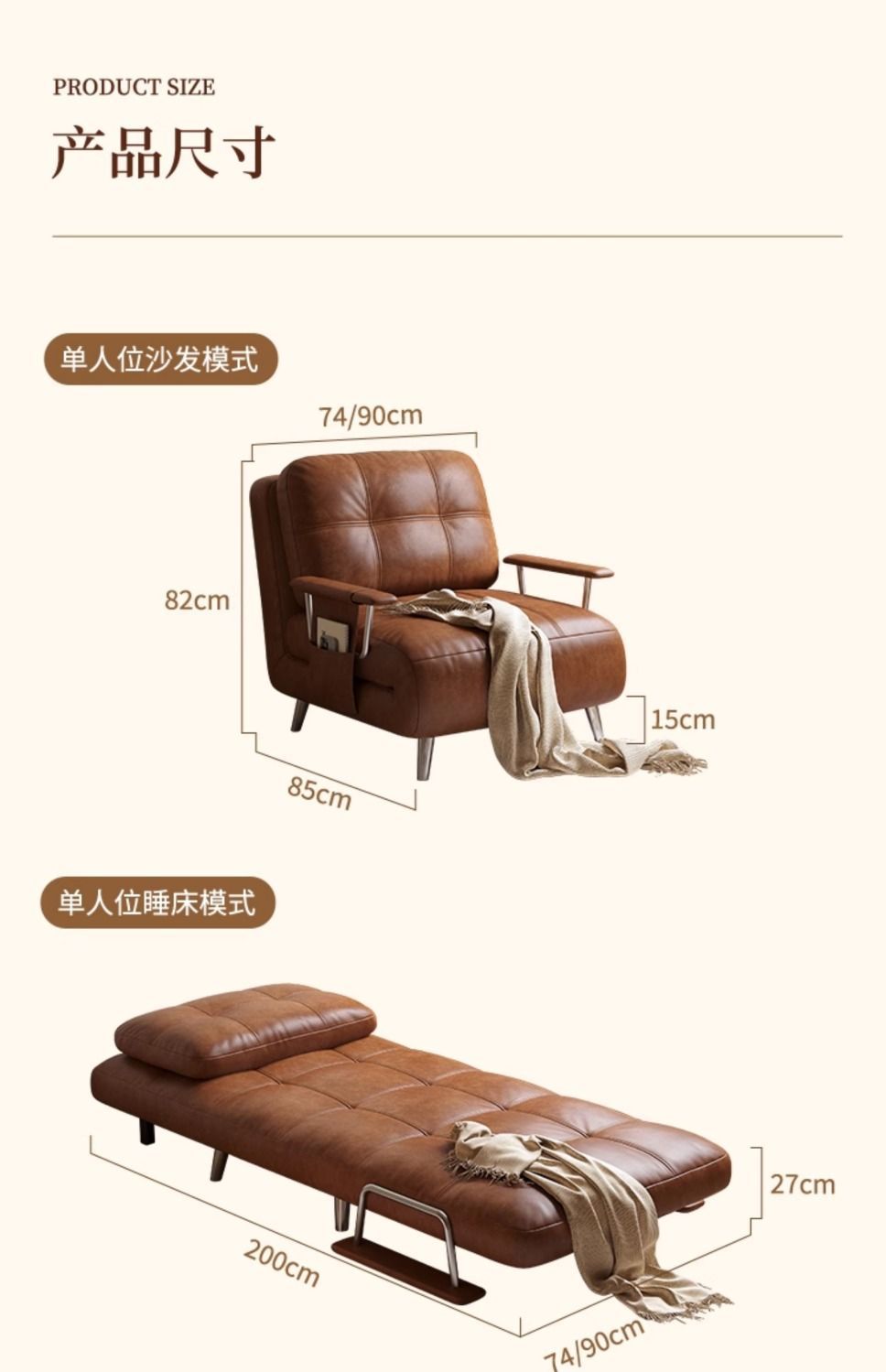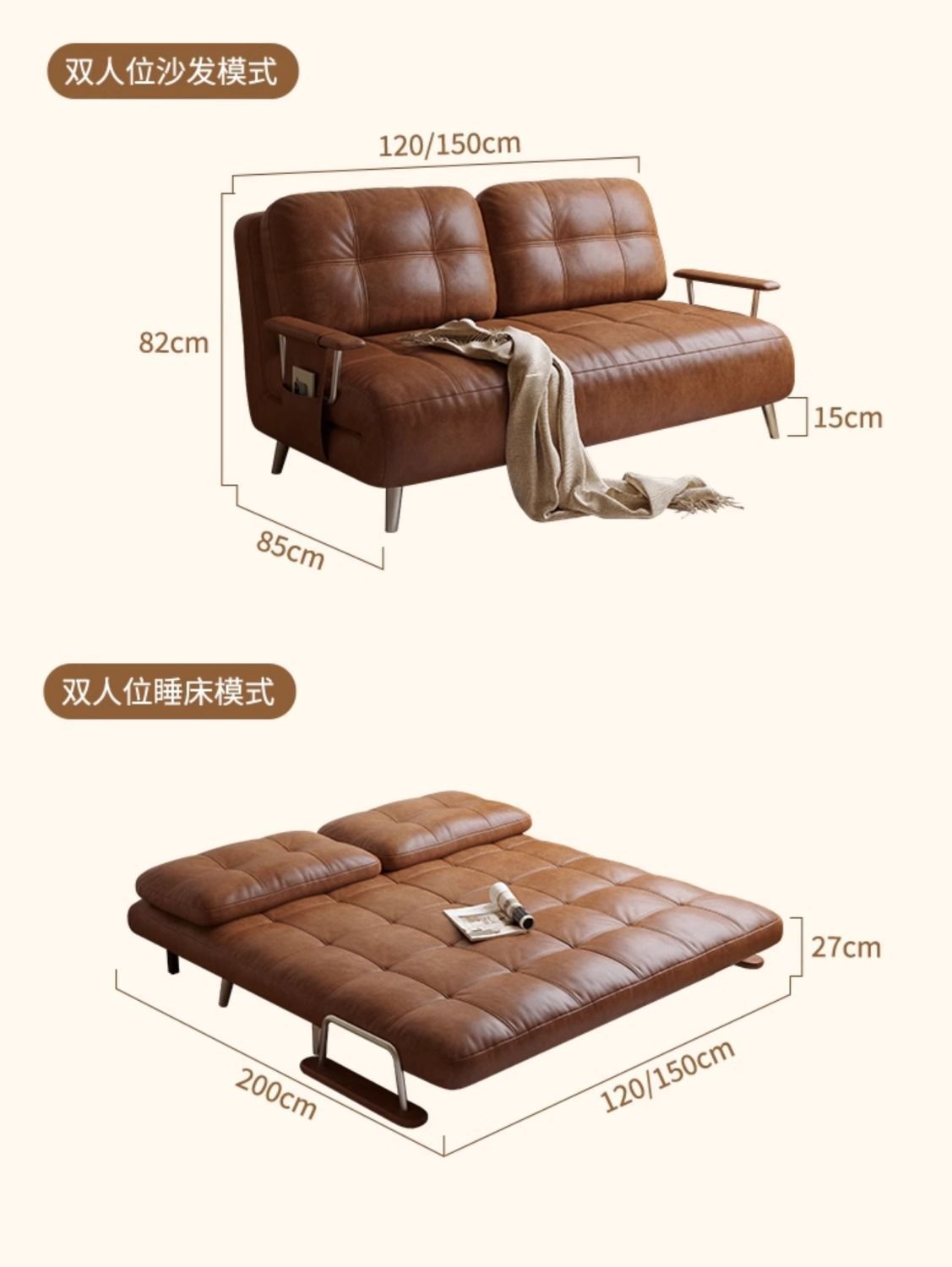 ホット販売ソファベッド一人折りたたみ両用中古風小戸型伸縮油蝋皮ソファ書斎二人用オイルワックス