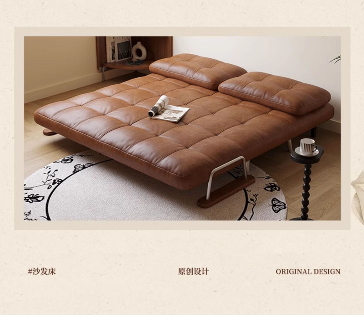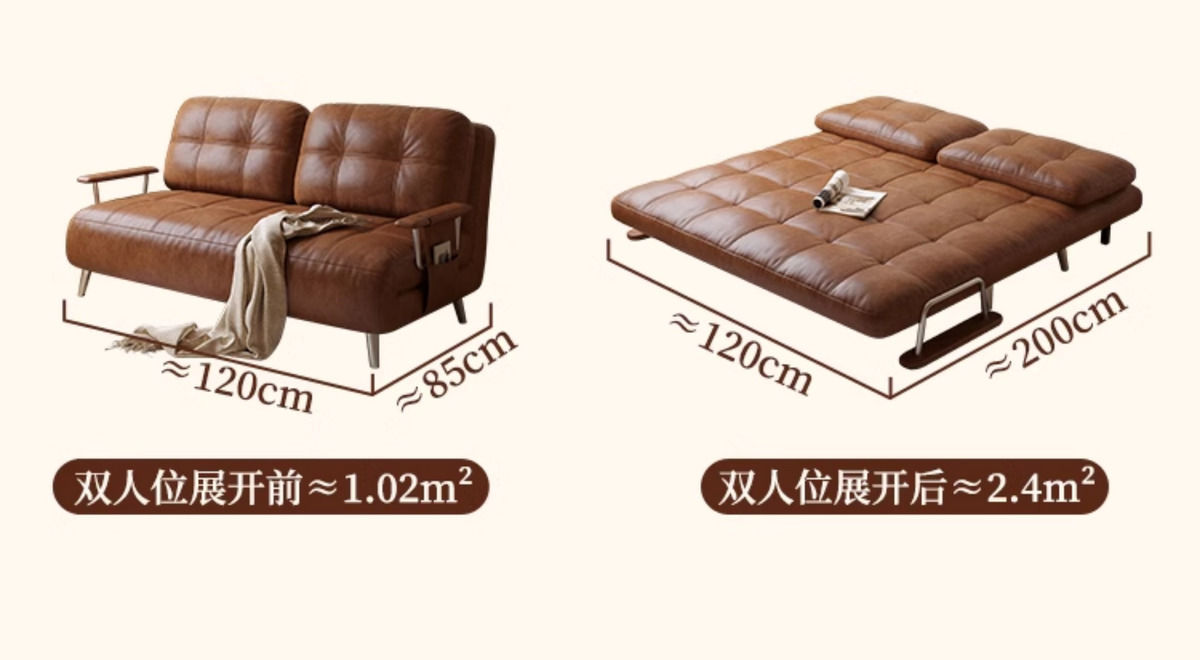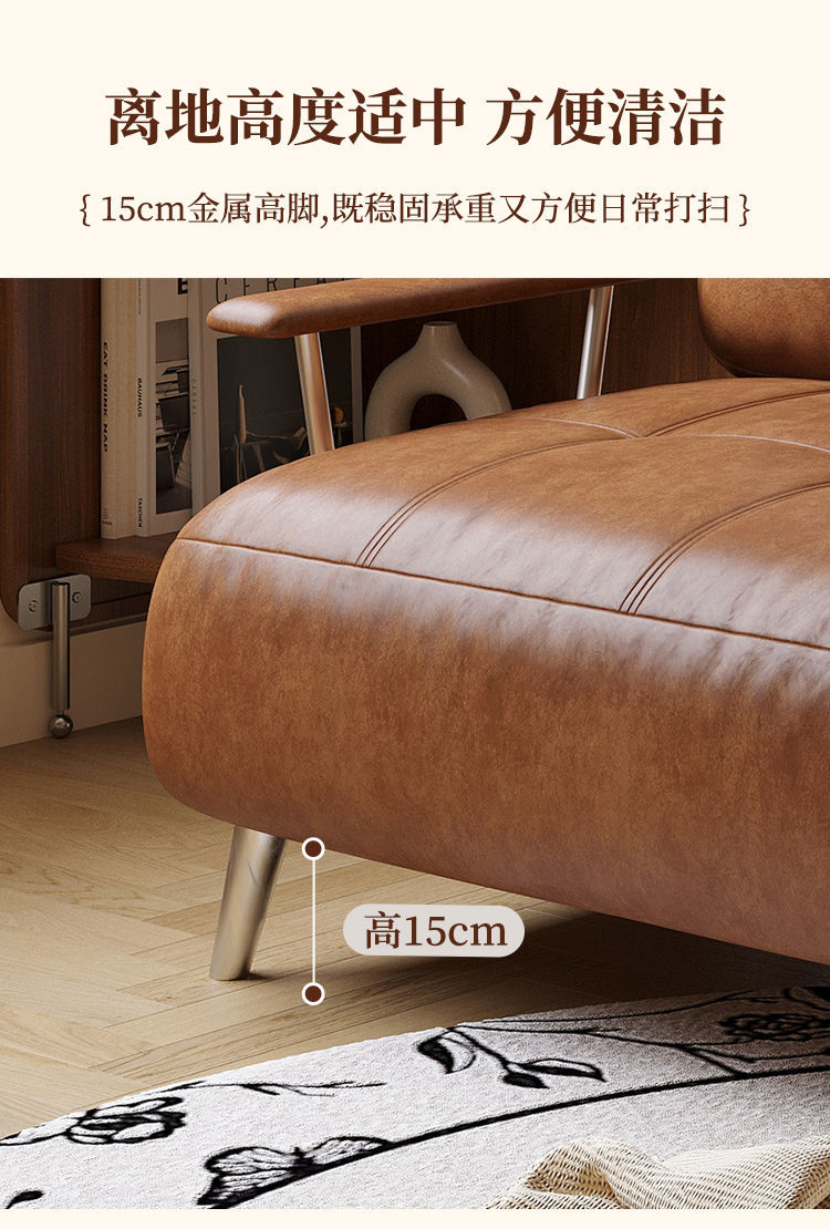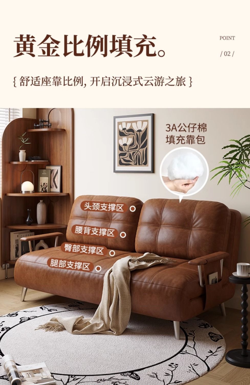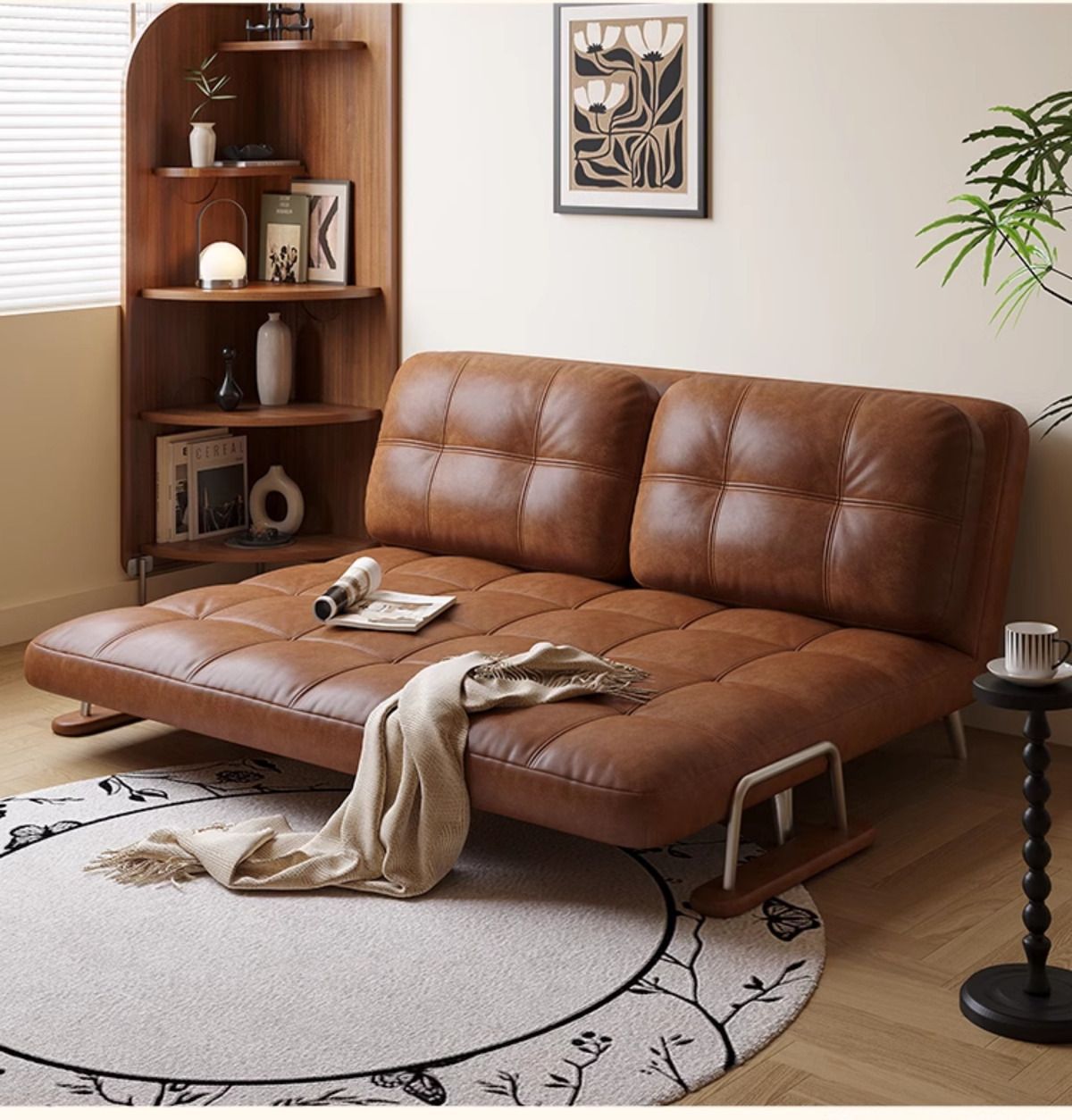 ホット販売ソファベッド一人折りたたみ両用中古風小戸型伸縮油蝋皮ソファ書斎二人用オイルワックス