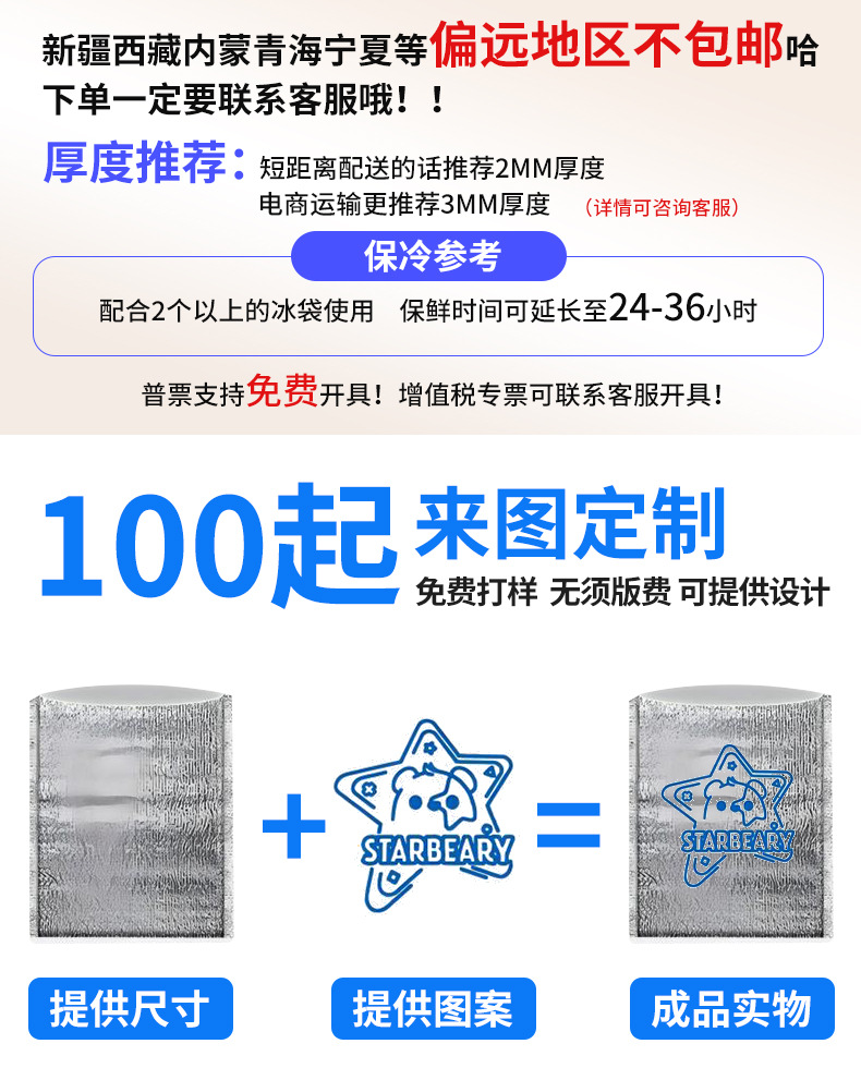 現物販売保温袋使い捨てアルミ箔厚手カスタム焼き生鮮断熱保冷袋ゴム付き立体袋
