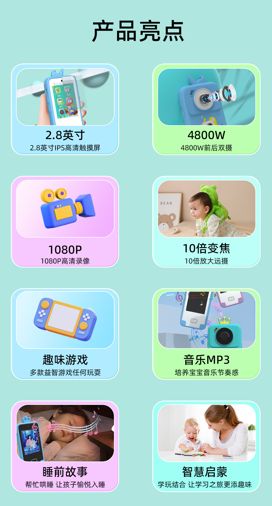人気の子供用携帯電話ミニカメラ、学習用高画質カメラ、スマートゲーム、音楽再生、前後デュアルカメラ、タッチスクリーン
