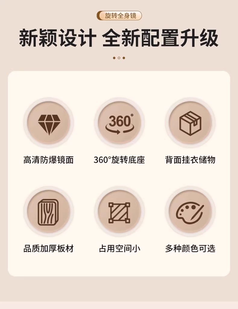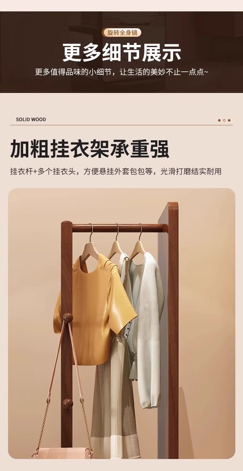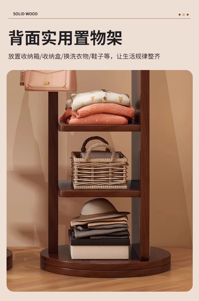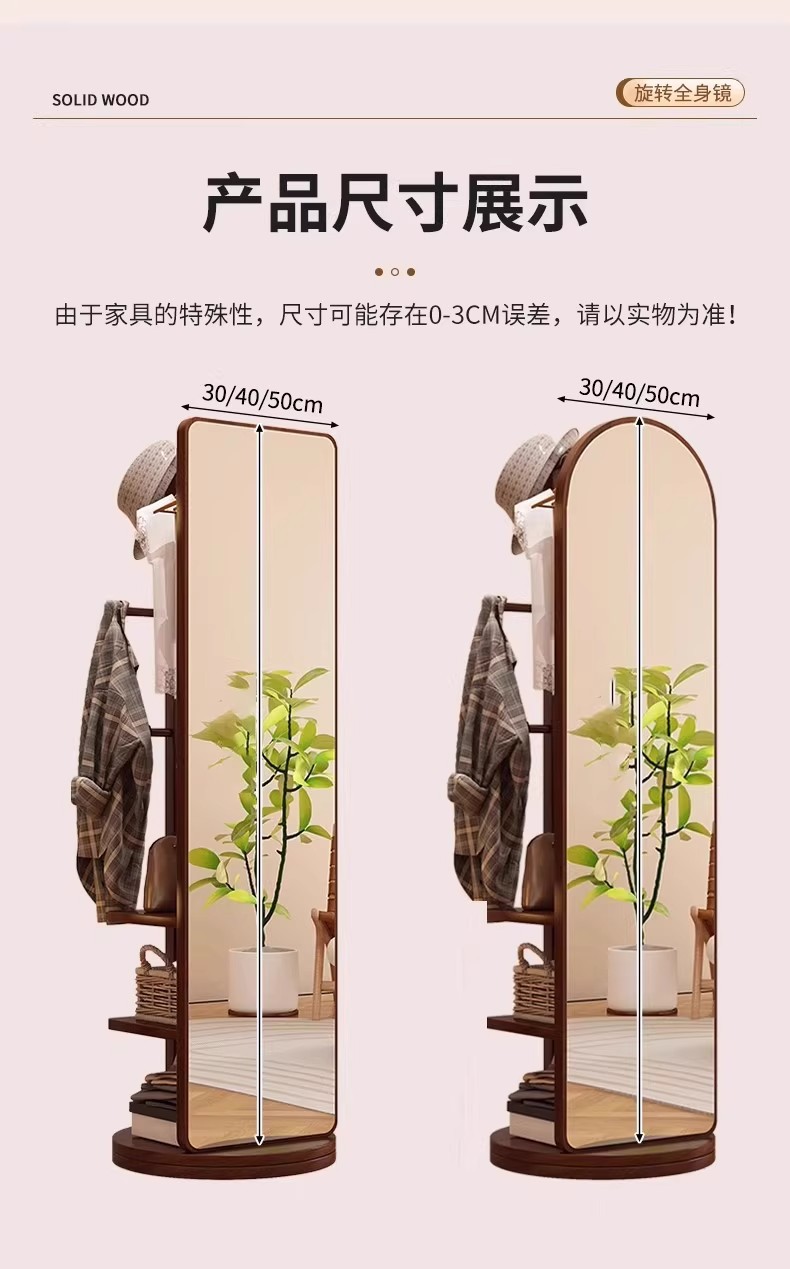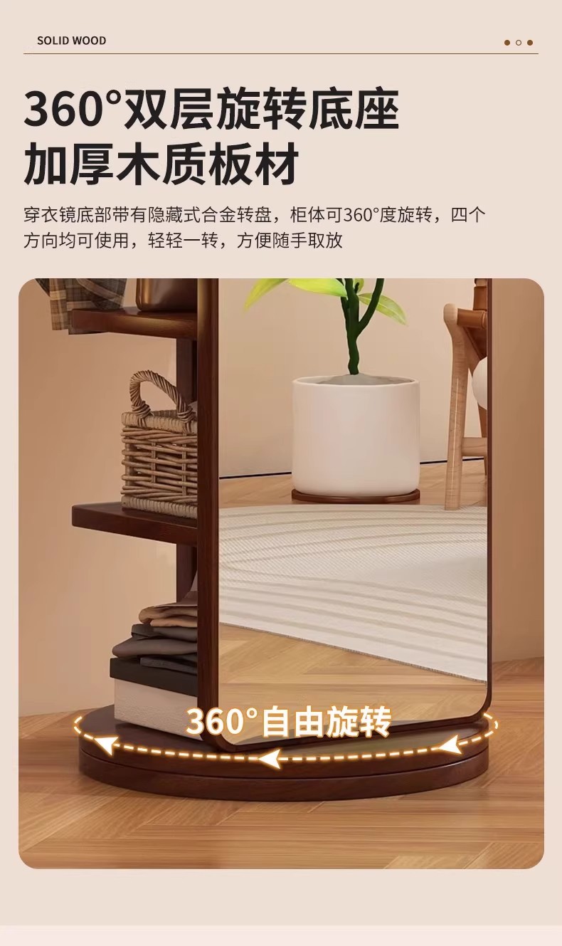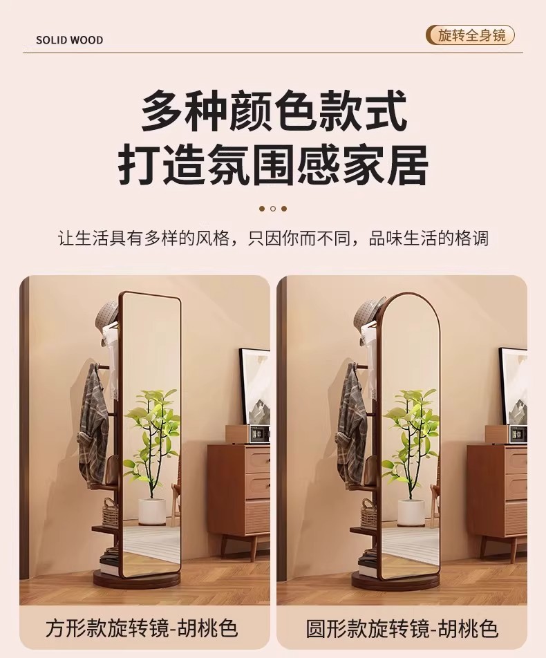 回転式全身鏡、床置き鏡、家庭用可動式寝室用姿見、洋服掛け一体型試着鏡収納
