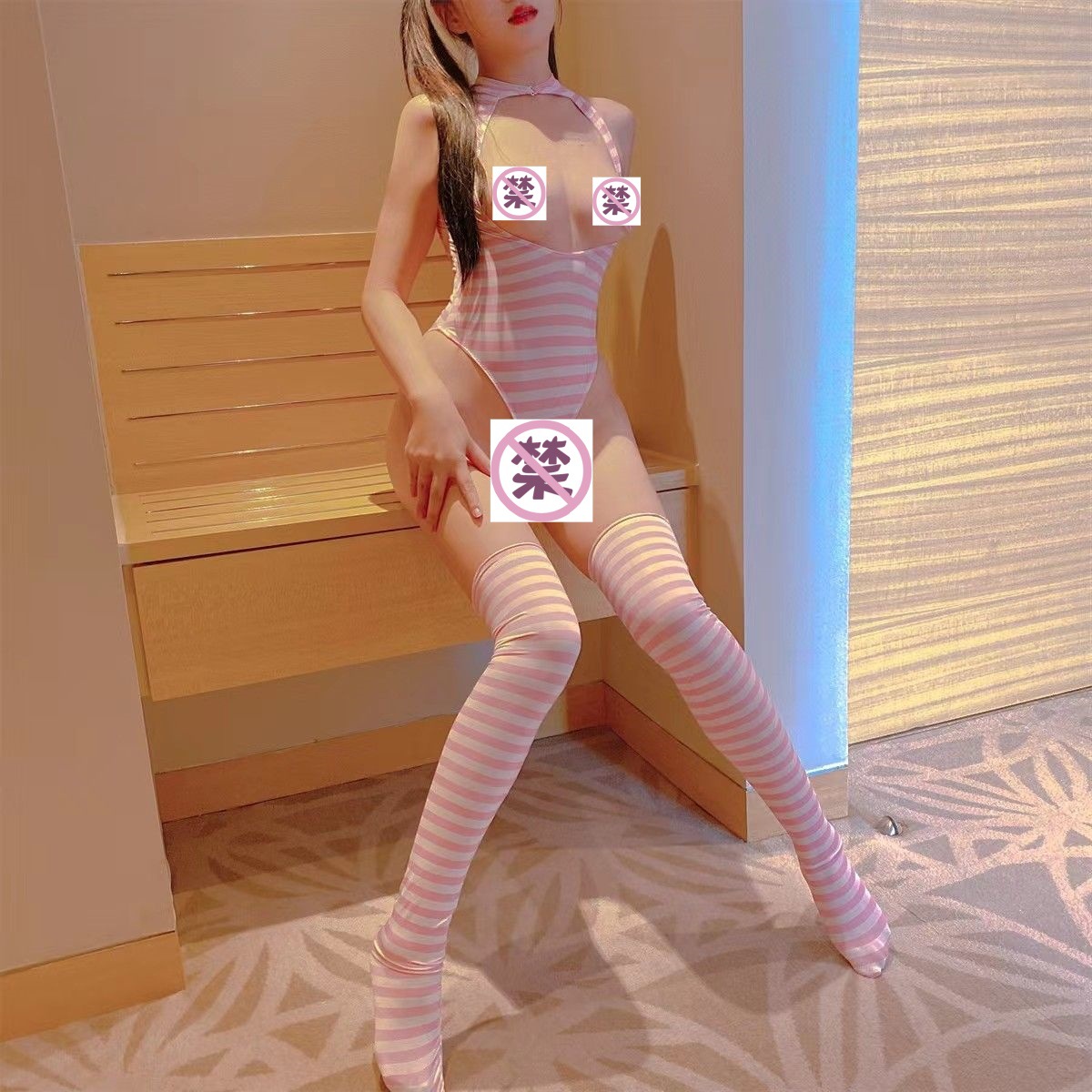 日本のコミックかわいいセクシーな下着サッカーベビーストライプビキニ誘惑純情女の子オープンジャンプスーツスーツ