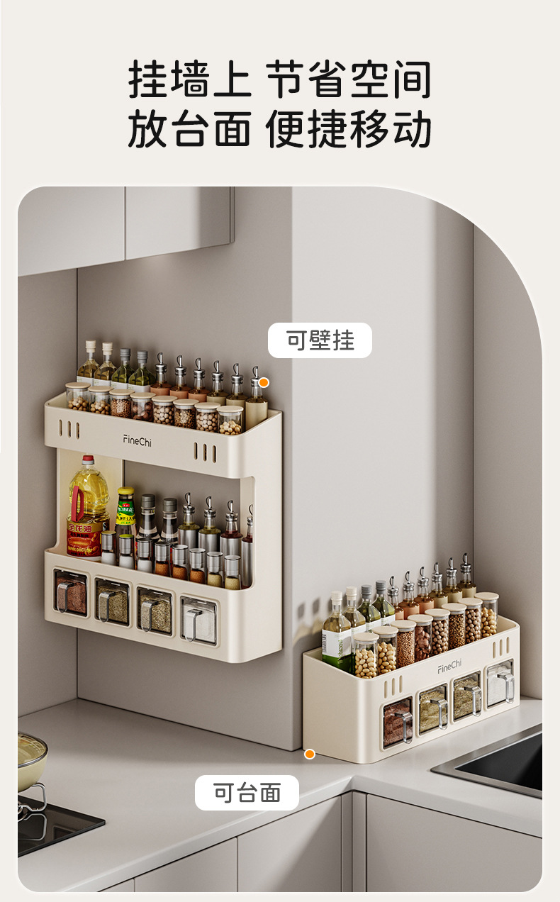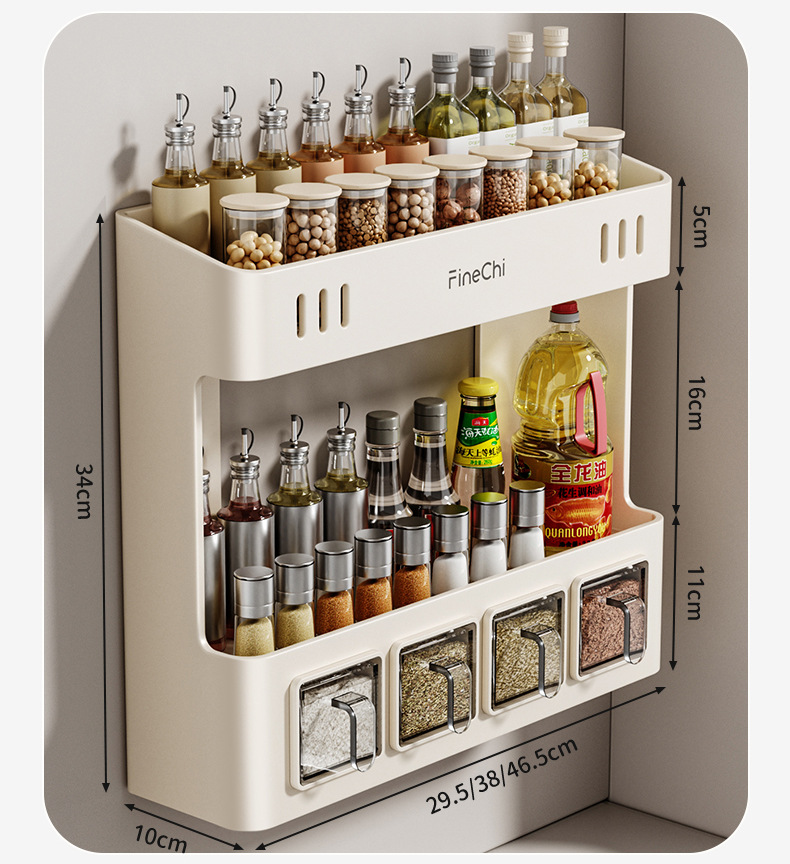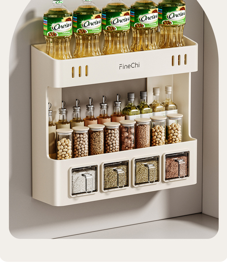 FINECHIキッチン調味料ラック壁掛け式家庭用多機能調味料セット調味料ボックス缶