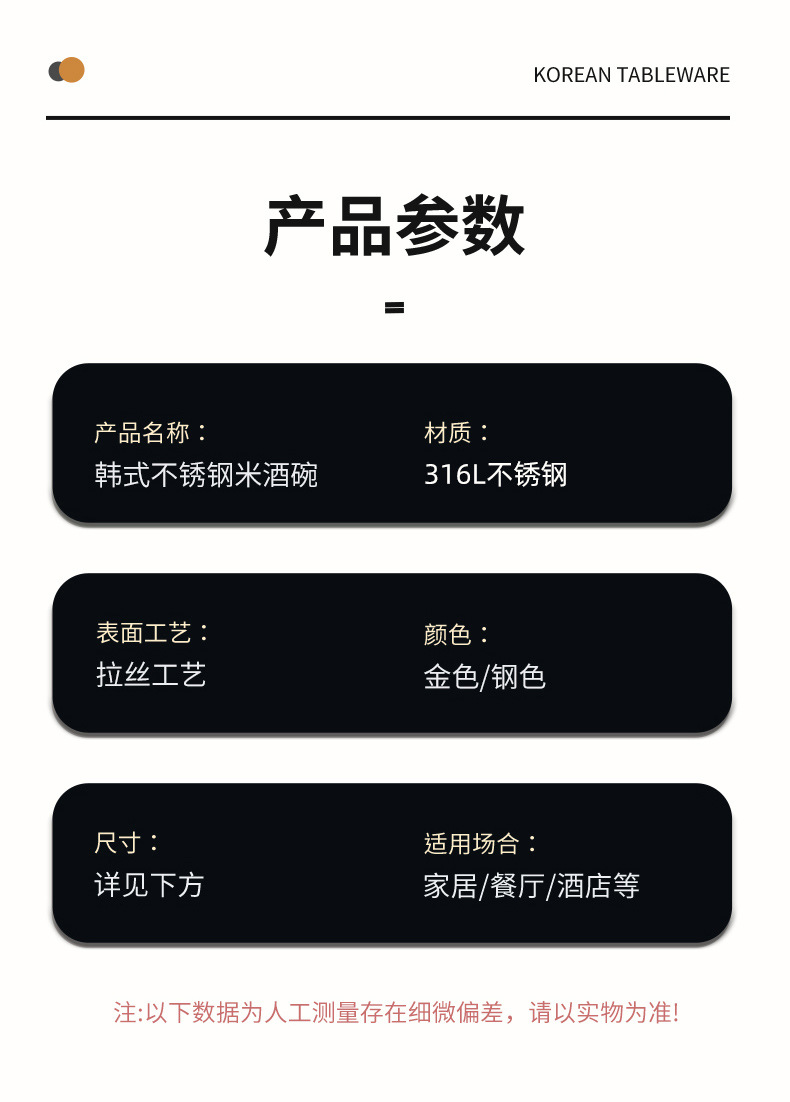 316ステンレスの金色の米酒の碗は手の軽食の碗の韓国式の料理店の専用の碗を持って調味料の小さい碗をつけます。