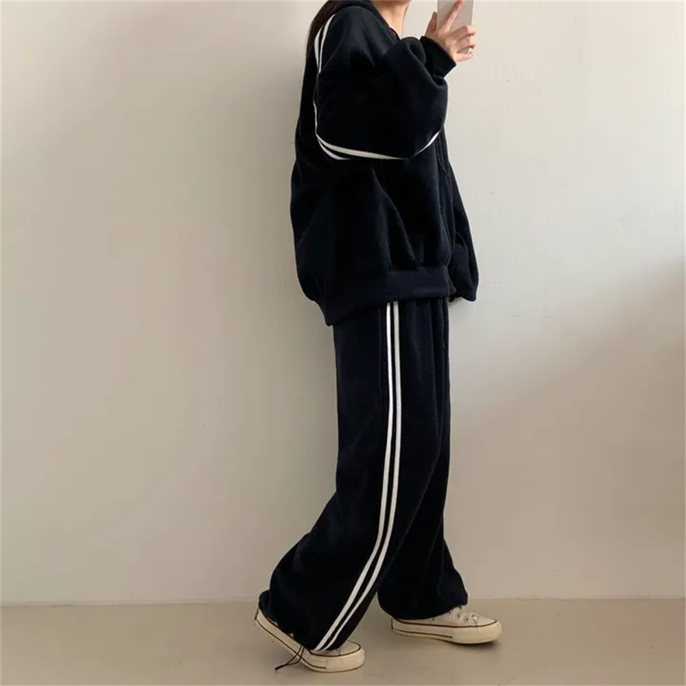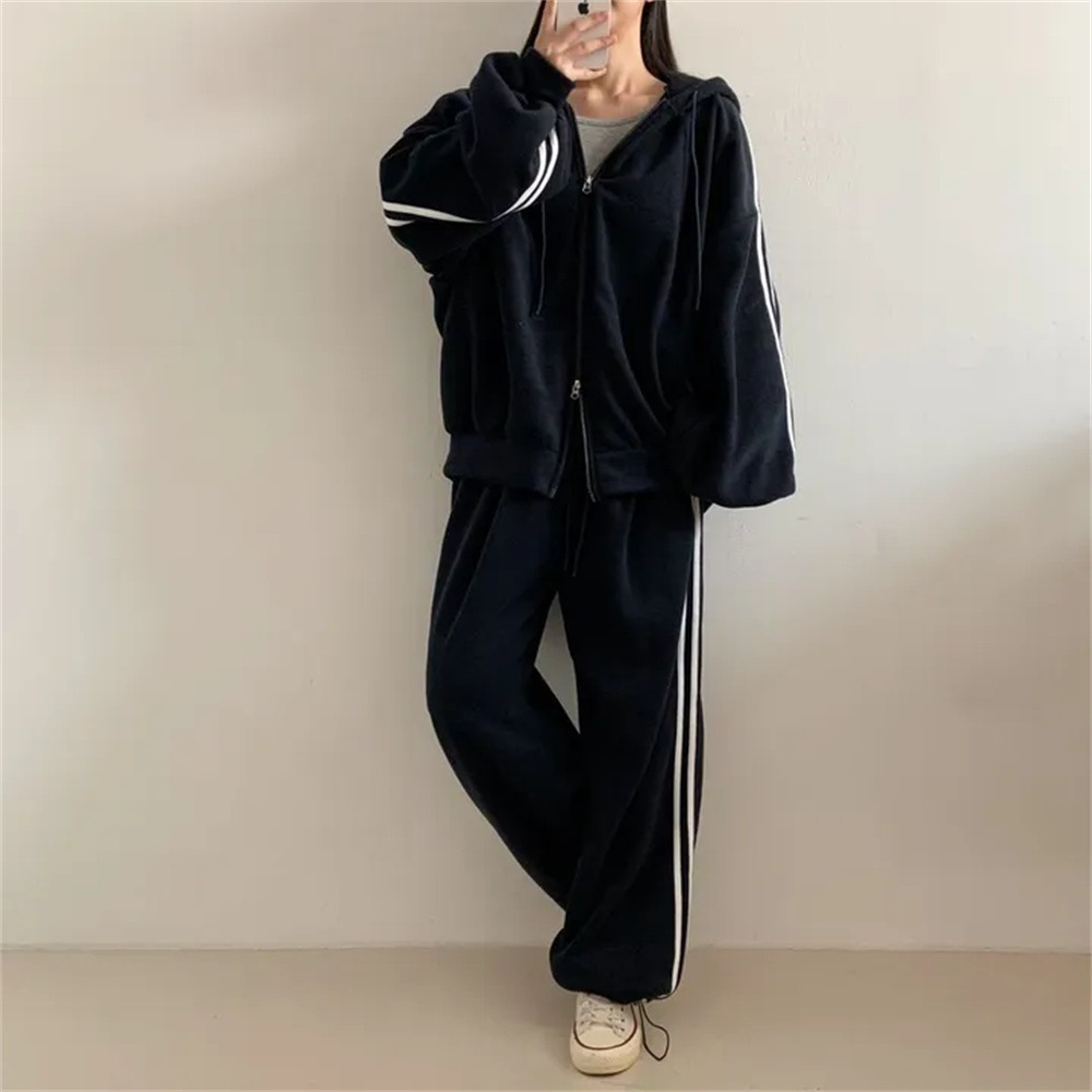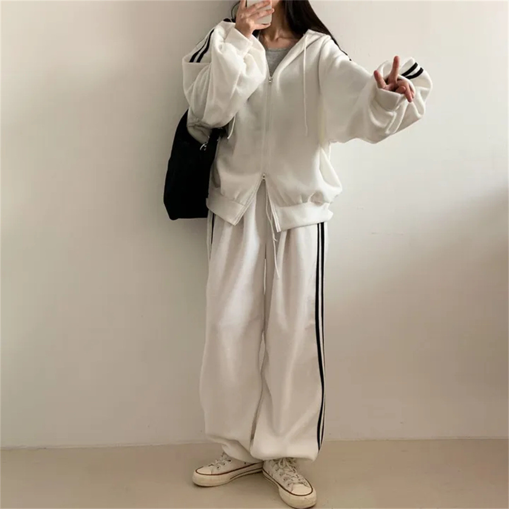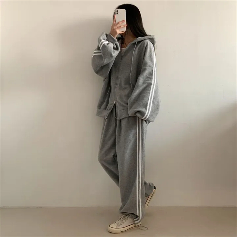 クロスボーダー卸売ジッパースウェットシャツカジュアルツーピースグレー韓国ブランドファッションスポーツスーツ女性のための春と秋怠惰なルーズ