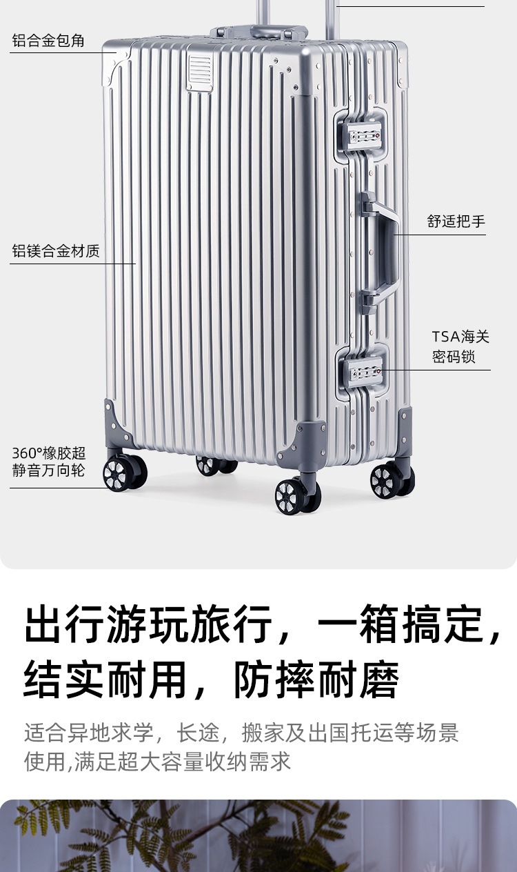 全アルミマグネシウム合金スーツケース男女搭乗スーツケース万向輪金属アルミ製ハード暗号箱荷物バッグ