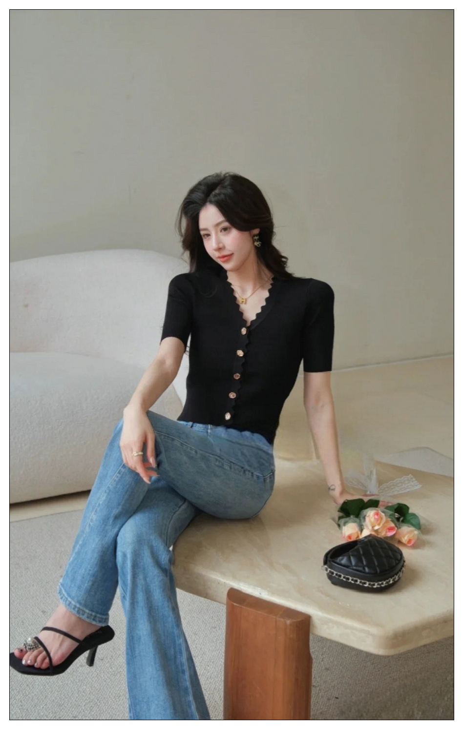高バージョン SD Xiaohuo 春夏トップス Nanyou ハイエンド婦人服 Xiaoxiangfeng ハイエンド半袖ニットカーディガンアウター