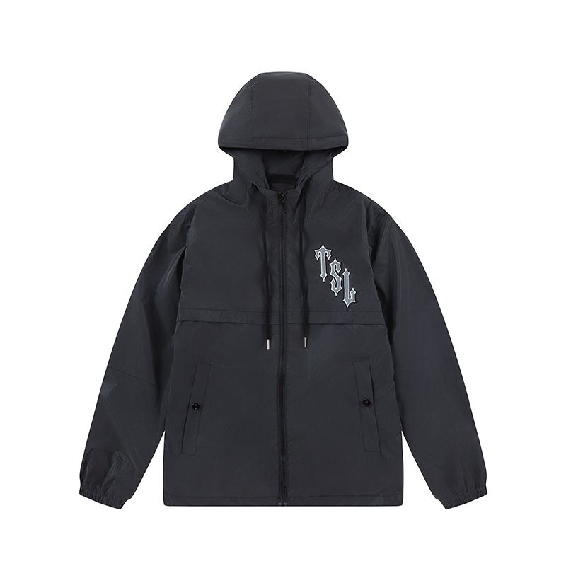 貿易クロスボーダー秋と冬 Trapstar レター刺繍ジッパーフード付きウインドブレーカー男性と女性のルーズジャケット卸売