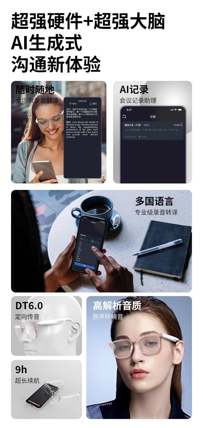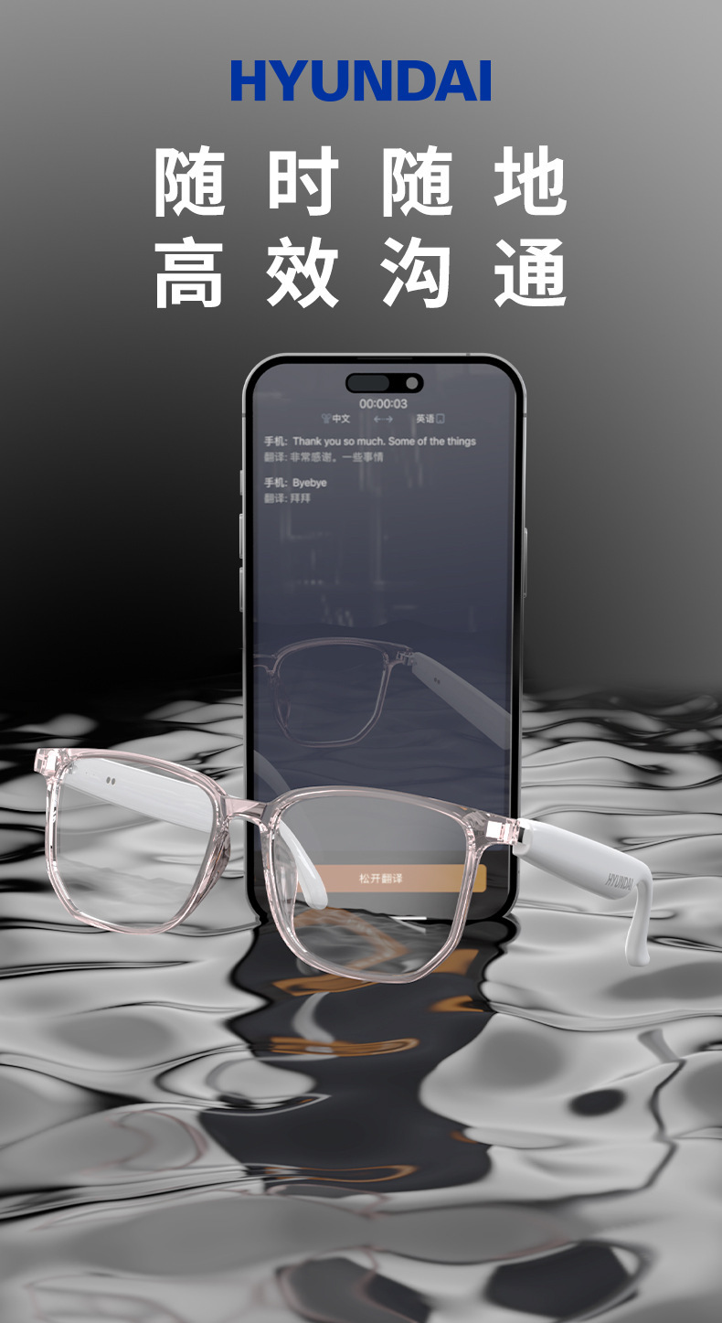 現代HY-G9 bluetoothスマートAIメガネ同時通訳144カ国語リアルタイム無線翻訳イヤホン通話