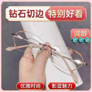 2022新款钻石切边星光细闪无框老花镜高清防蓝光时尚减龄女士高档