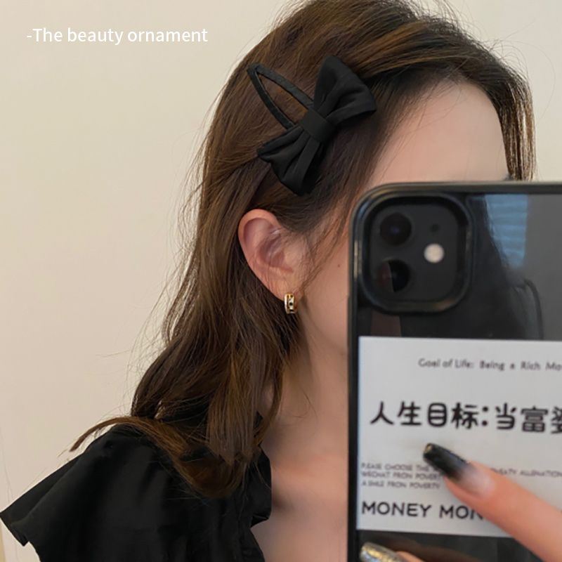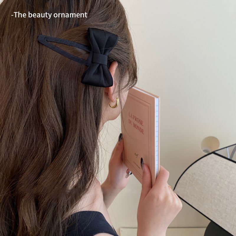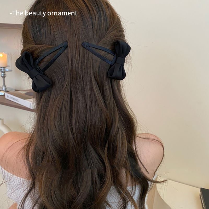 高見え黒気質サテンリボンBBクリップ額前髪サイドクリップ前髪クリップヘアピンヘアピンヘッドドレス