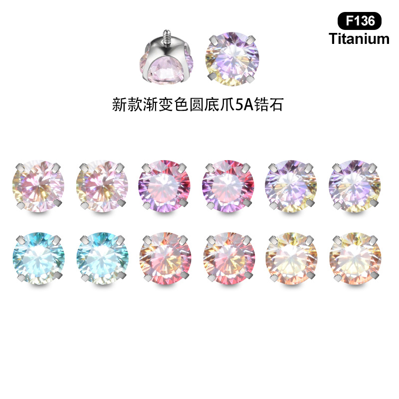 インターネット有名人人気のグラデーションカラー丸底爪 F136 チタン 5A ジルコン雌ねじイヤリングへそネイルピアスジュエリーアクセサリー