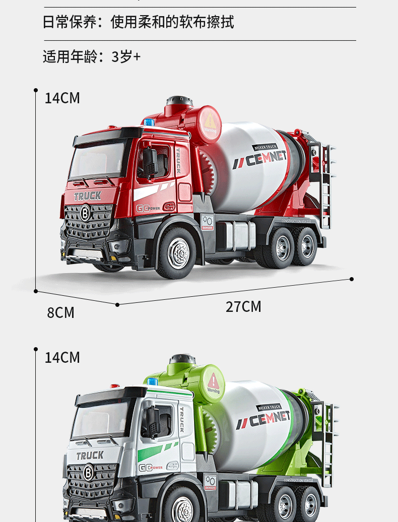 合金バージョン (電動) 赤いミキサー車 + バッテリー