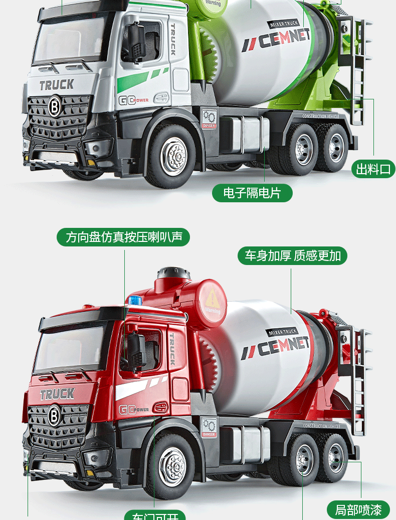 合金バージョン (電気) グリーンミキサー車 + バッテリー