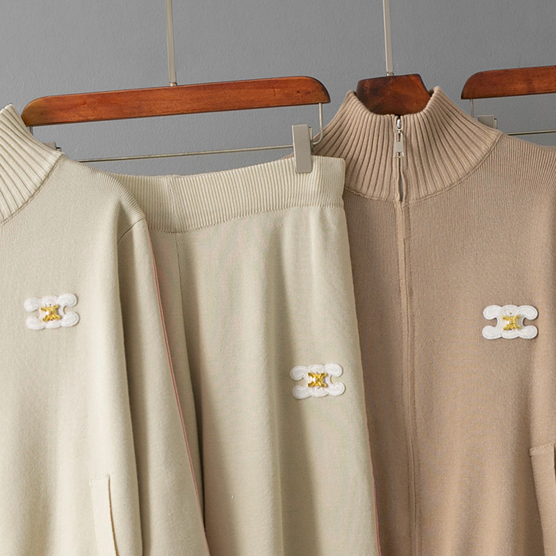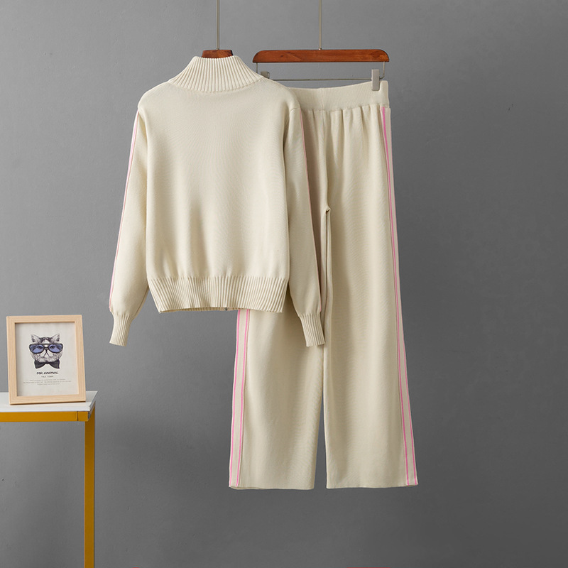 クロスボーダーのスポーツスーツの女性の春秋の服の新型のファッション的な洋風のファスナーの立襟の衛服のスポーツ服のカジュアルな2つのセット