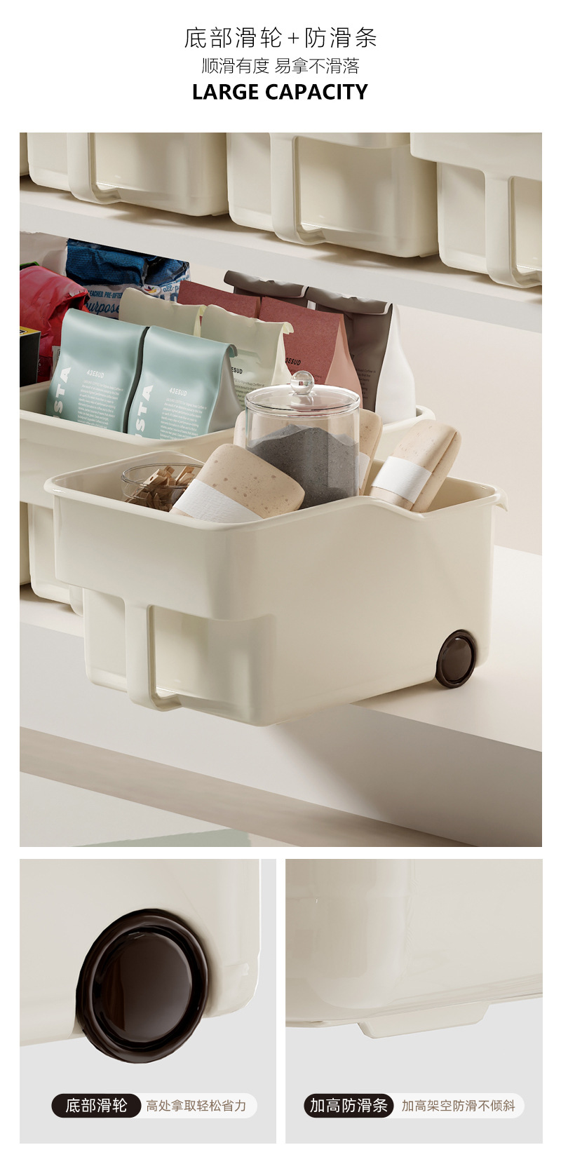 厨房厨柜内收纳盒 可放调味品 加深加高收纳盒 下水槽杂物收纳 多功能多场景适用 带滑轮 推拉便捷省力 带把手 拿取方便好抽取 吊柜收纳好帮手 高柜整理收纳盒 多功能收纳篮