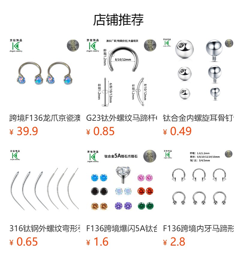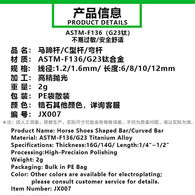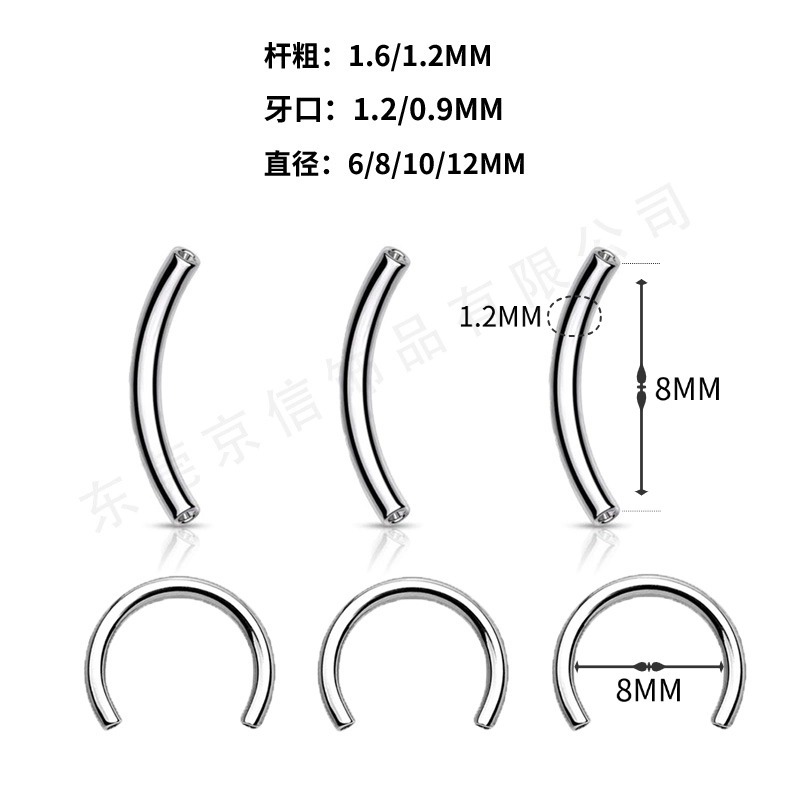 京信 F136 チタン合金 インターナルネジ C型バー U字型馬蹄バー アイブロウピアスバー G23チタン ピアスアクセサリー
