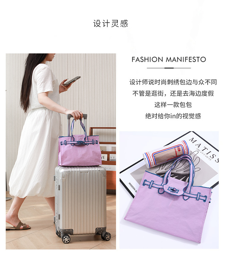 ライトパープルブルーハンドトートバッグ