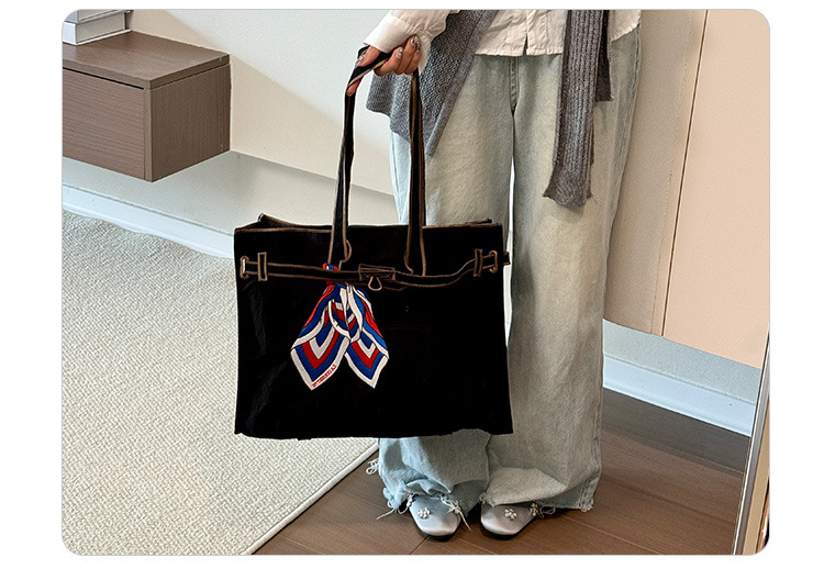 ブラック シルク スカーフ ノット トート バッグ
