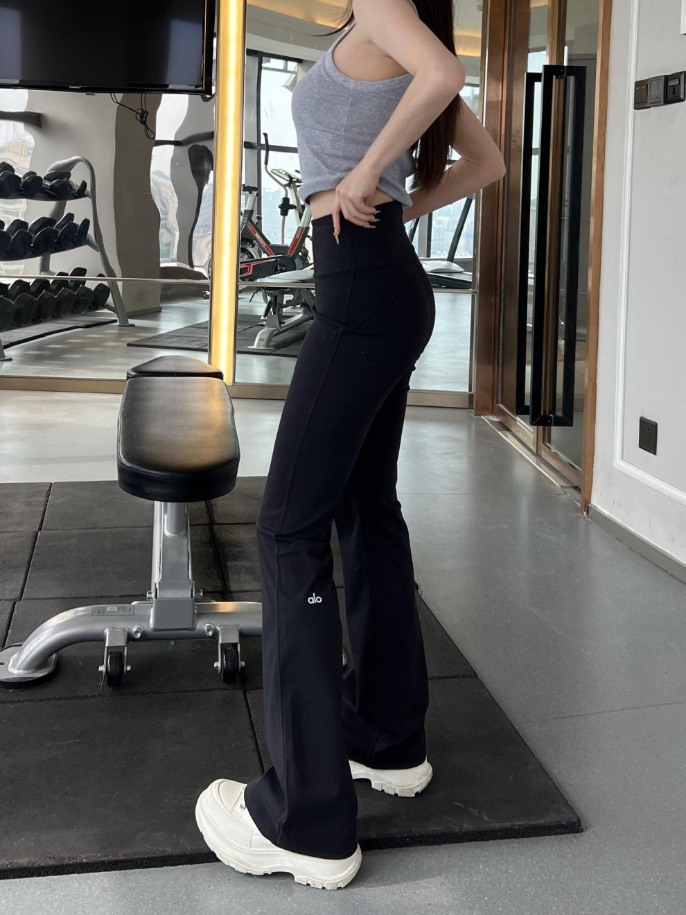Alo ヨガ マイクロフレア パンツ レディース ハイウエスト スリム ブラック グレー ピンク 速乾性 スリム アウター ヒップ リフティング ヨガ パンツ